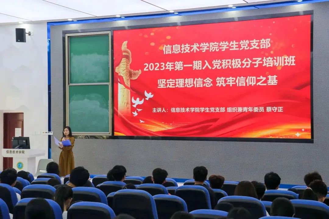 培训伊始,代晓明老师围绕“为中国人民谋幸福”的初心和“为中华民族谋复兴”的使命,告知学子们成为新时代合格党员一定要不忘初心,牢记使命,真正做到守初心、担使命、找差距、抓落实。根据入党的相关知识与制度,代老师讲述了申请入党的条件、发展党员的有关规定,同时带领大家感悟入党誓词。随后,代老师从预备党员的预备期、党员的党龄和四个注意点三个方面,使学子们了解共产党员的权利和义务。接下来,蔡守正老师对于入党积极分子进行培养教育工作提出了相关要求和建议,根据党员发展要求,同时结合《中共437bwin必赢国际委员会关于印发< 437bwin必赢国际学习贯彻习近平新时代中国特色社会主义思想主题教育实施方案>的通知》(琼贸职公司党字〔2023〕26号)的要求,引导作为入党积极分子、入党申请人的学子们严格对照自己的实际情况进行查摆。