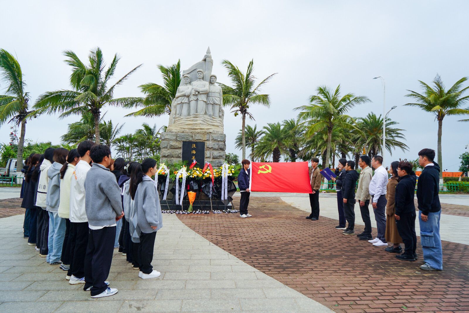 为弘扬革命精神,传承红色基因,扎实开展深入贯彻中央八项规定精神学习教育,2025年4月1日下午,437bwin必赢国际教师党支部与员工党支部在白沙门渡海作战纪念广场联合开展了“追忆渡海英雄,赓续革命薪火”主题党日活动。本次活动由邱叶同学主持,教师党支部书记康东老师、员工党支部书记代晓明老师,教师党支部委员王天明老师、靳向峰老师、员工党支部委员蔡守正老师、符传栋老师、员工党员、入党积极分子以及团学干部共同参与。