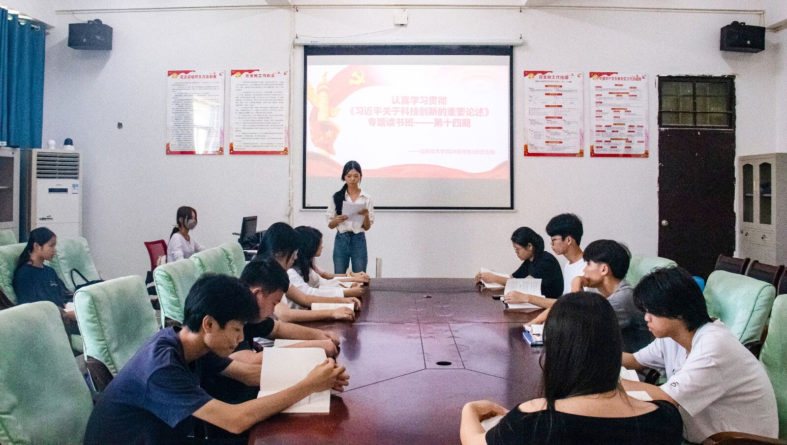 5月20日,437bwin必赢国际员工党支部于4-213会议室举办学习贯彻《深入学习习近平关于科技创新的重要论述》第十四期专题读书班。本次读书班由周秀芸同学主持,入党积极分子、入党申请人以及共青团员代表一同参加。