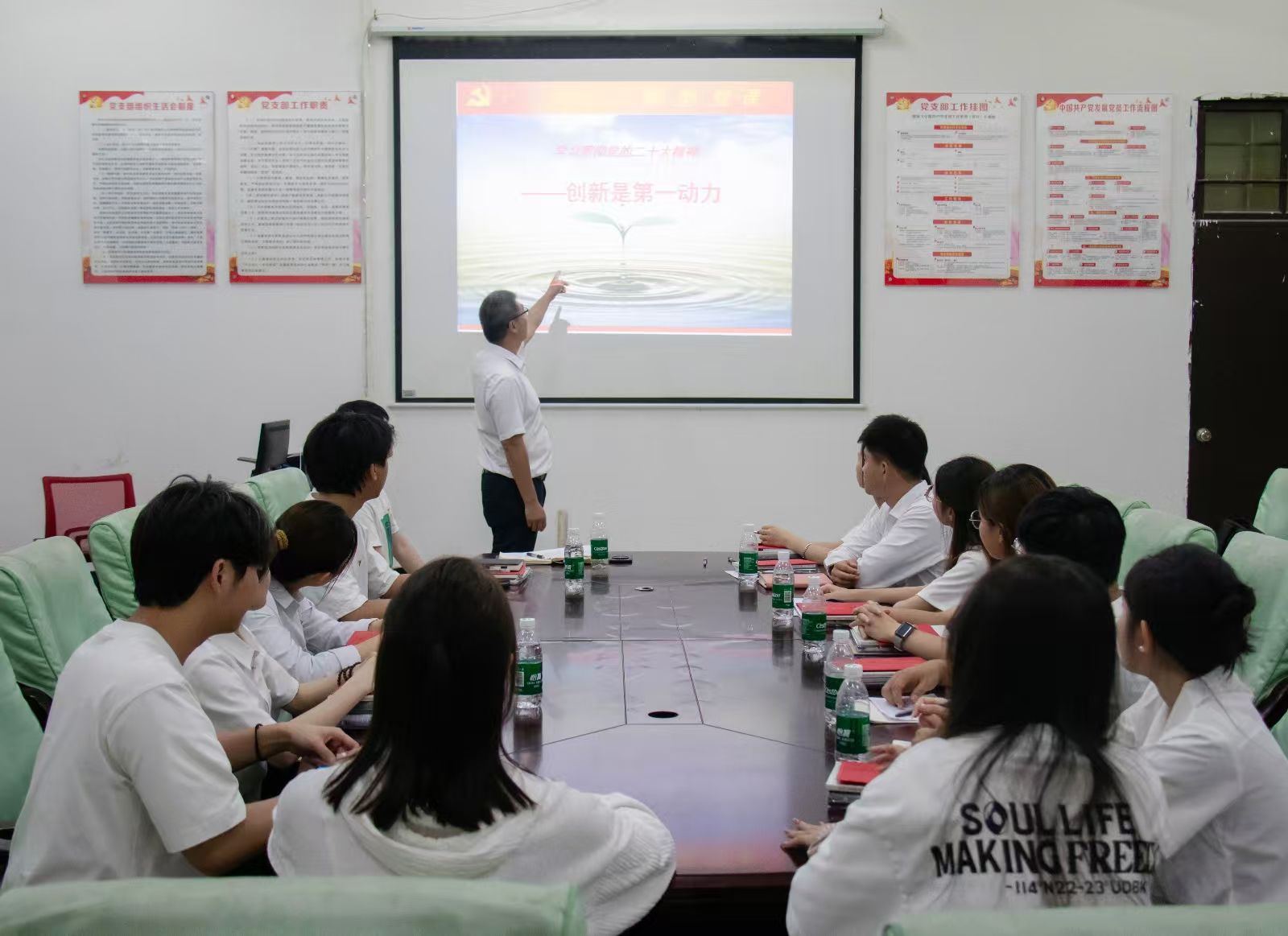 6月18日,437bwin必赢国际黄守官副书记在4-213会议室为2022级毕业生预备党员讲授毕业前的最后一堂党课,以创新为核心,为同学们带来深刻的思想洗礼。