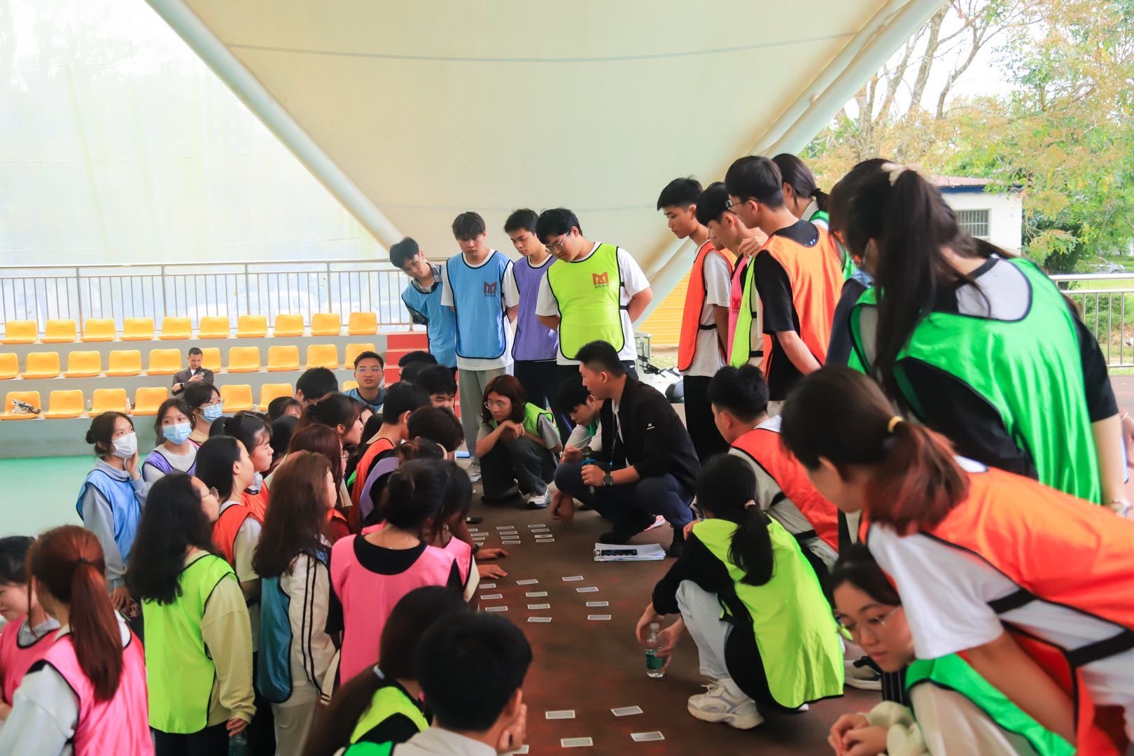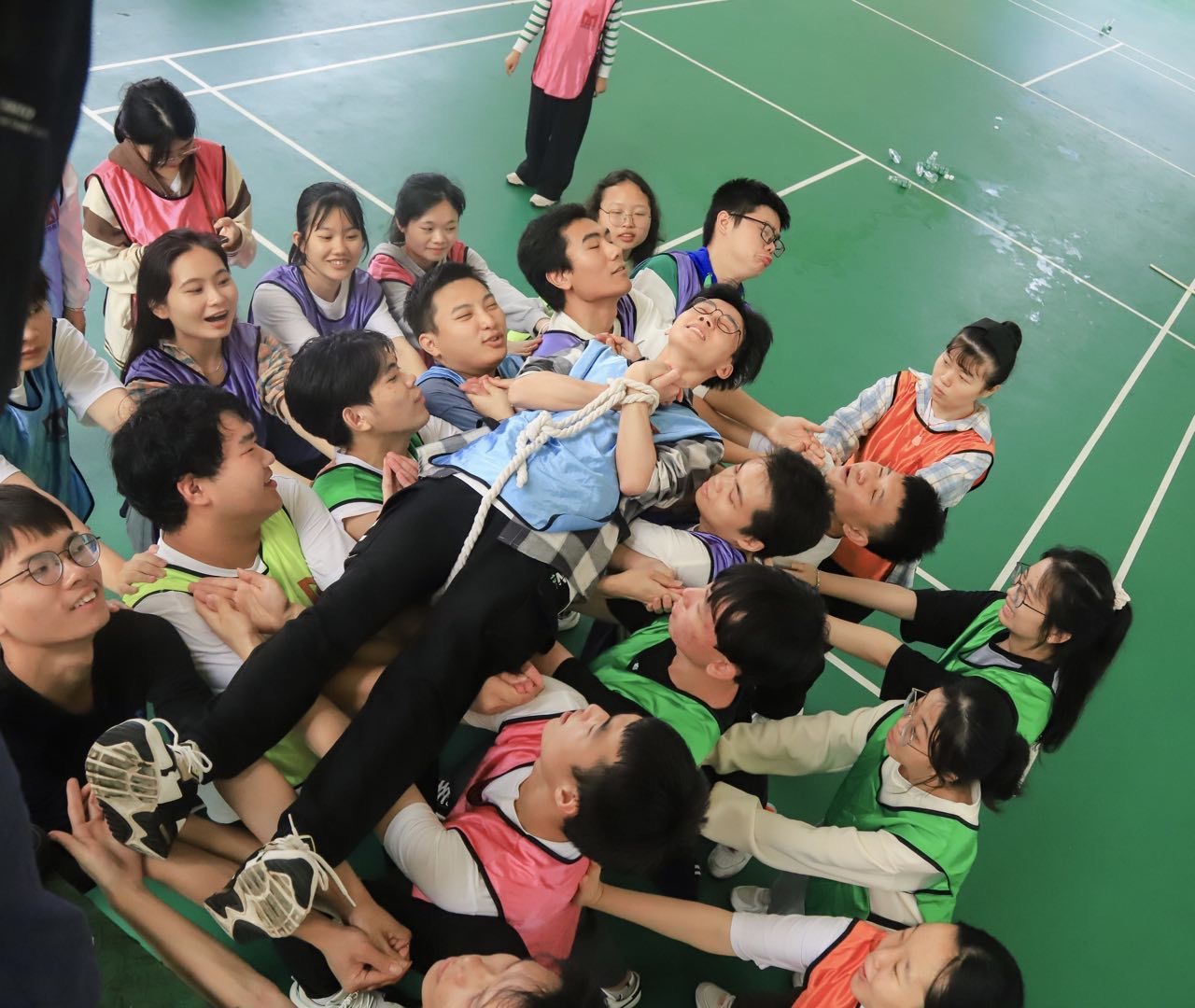 活动伊始,梁其钰副书记希望全体成员放开自我,相互了解,融入到集体中。在“大树松鼠”和“数字抱团”热身小游戏后,团学素拓正式拉开序幕,大家通过随机组队的方式被分为6个游戏小组,相互探讨,设计好了队名、队徽、队歌、队形,并展开了三项团队协作比赛,分别是速度、技巧比拼的报数、套呼啦圈、站板离地;记忆力、团队交流比拼的翻扑克牌;配合、协作比拼的南水北调,最终,“六六大顺”小队获得了“最佳团队”。活动的最后,辅导员们与团学成员们共同完成齐心协力大挑战——信任背摔,每个成员都充满活力,积极参与,营造着团结、互信、互助、友爱的氛围。