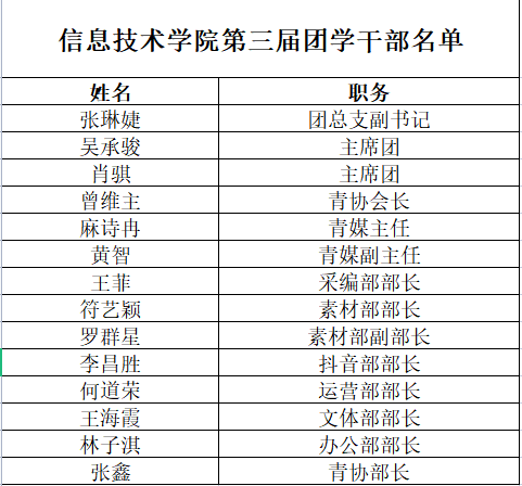 (青年媒体中心 王菲讯)立青年之志,谱时代新篇。2022年6月2日中午,公司召开团学第三届换届大会,学工办主任梁其钰老师,辅导员蔡守正,吴淑亲,全体团学成员以及各班班委到场参加。经437bwin必赢国际团总支前置把关,报信息技术公司党总支批准,最终确定以下同学为第三届团学干部成员。