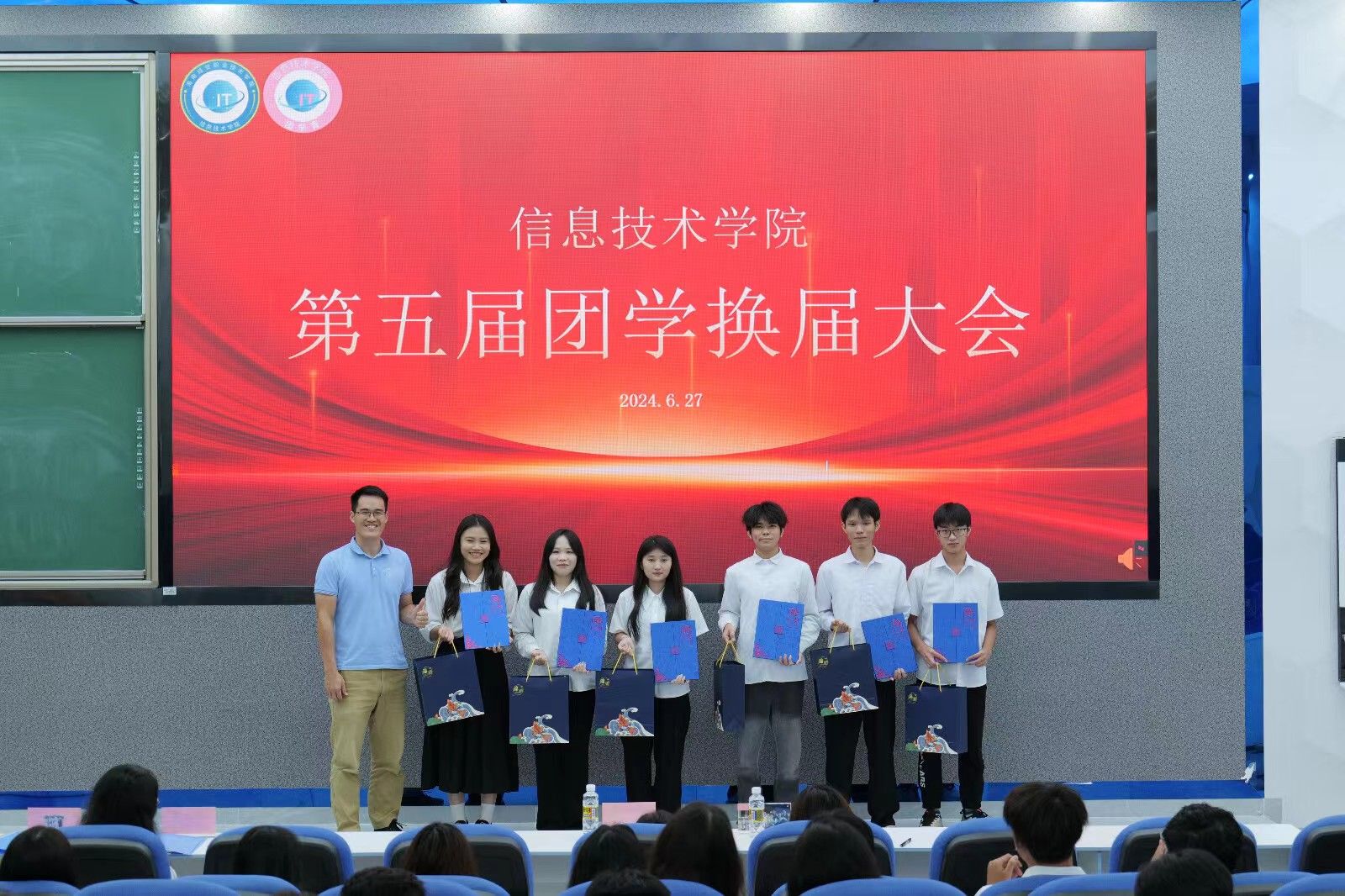 在颁发聘书环节,唐图老师为第四届主席团成员颁发了聘书,蔡守正老师和吴淑亲老师为第四届团学干部颁发了聘书。这一环节不仅是对他们过去一年辛勤工作的肯定,更是对他们未来工作的鼓励和期待。