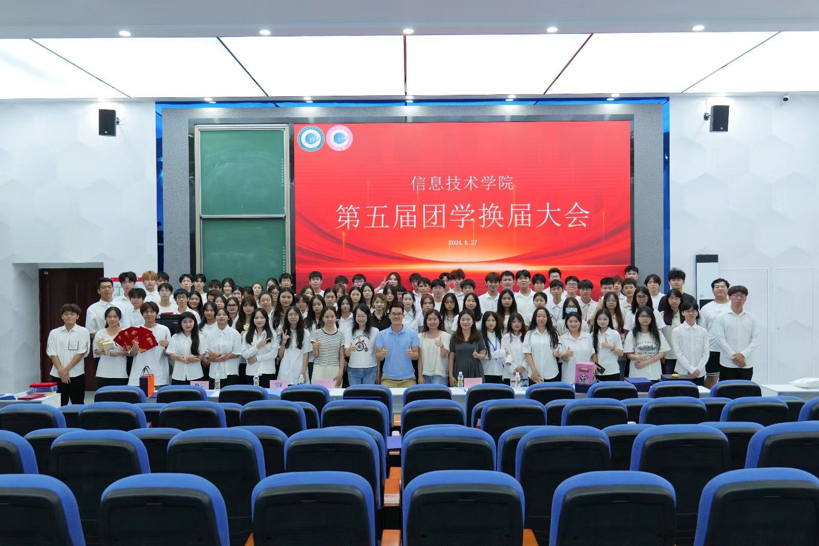 矢志不渝谱青春,接续奋斗新征程。437bwin必赢国际第五届团学换届大会在热烈的掌声中圆满落幕。所有团学成员齐聚舞台,留下了一张充满纪念意义的合影,共同铭记这一重要时刻。此次大会的成功举办,不仅为团学工作注入了新的活力,更为437bwin必赢国际的持续发展和进步打下了坚实的基础。