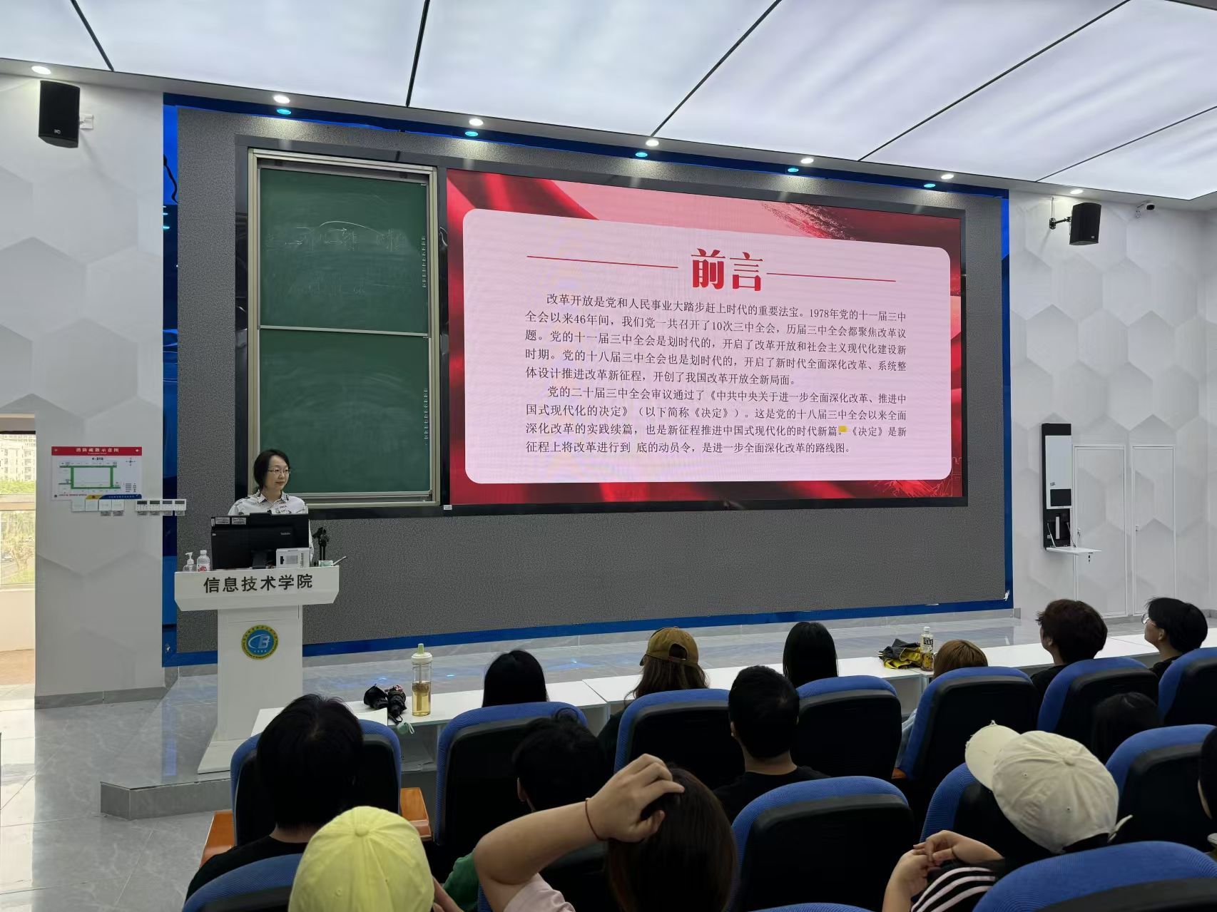 为庆祝中华人民共和国成立75周年,进一步深入学习贯彻党的二十届三中全会精神,2024年10月24日,437bwin必赢国际员工党支部在4-215教室开展了学习贯彻党的二十届三中全会精神读懂三中全会精神专题党课培训,本次党课由437bwin必赢国际员工党支部书记代晓明老师主持,23级入党积极分子、入党申请人以及员工干部代表共同参加。