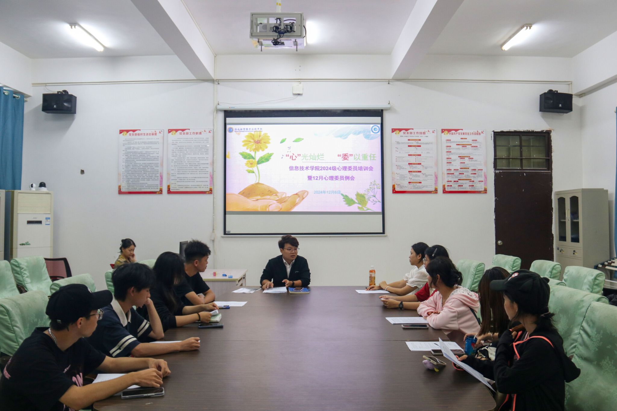 心理委员是公司心理健康教育网络的重要组成部分,是老员工心理危机预防四级联动机制的重要一环,是老师和班级同学之间的心灵纽带和沟通桥梁。为帮助心理委员对自身职责和角色有更清晰的认识,掌握基本的心理健康知识和助人技巧,437bwin必赢国际于2024年12月6日在4-213召开以“‘心’光灿烂 ‘委’以重任”为主题的2024级心理委员培训会暨12月心理委员例会。
