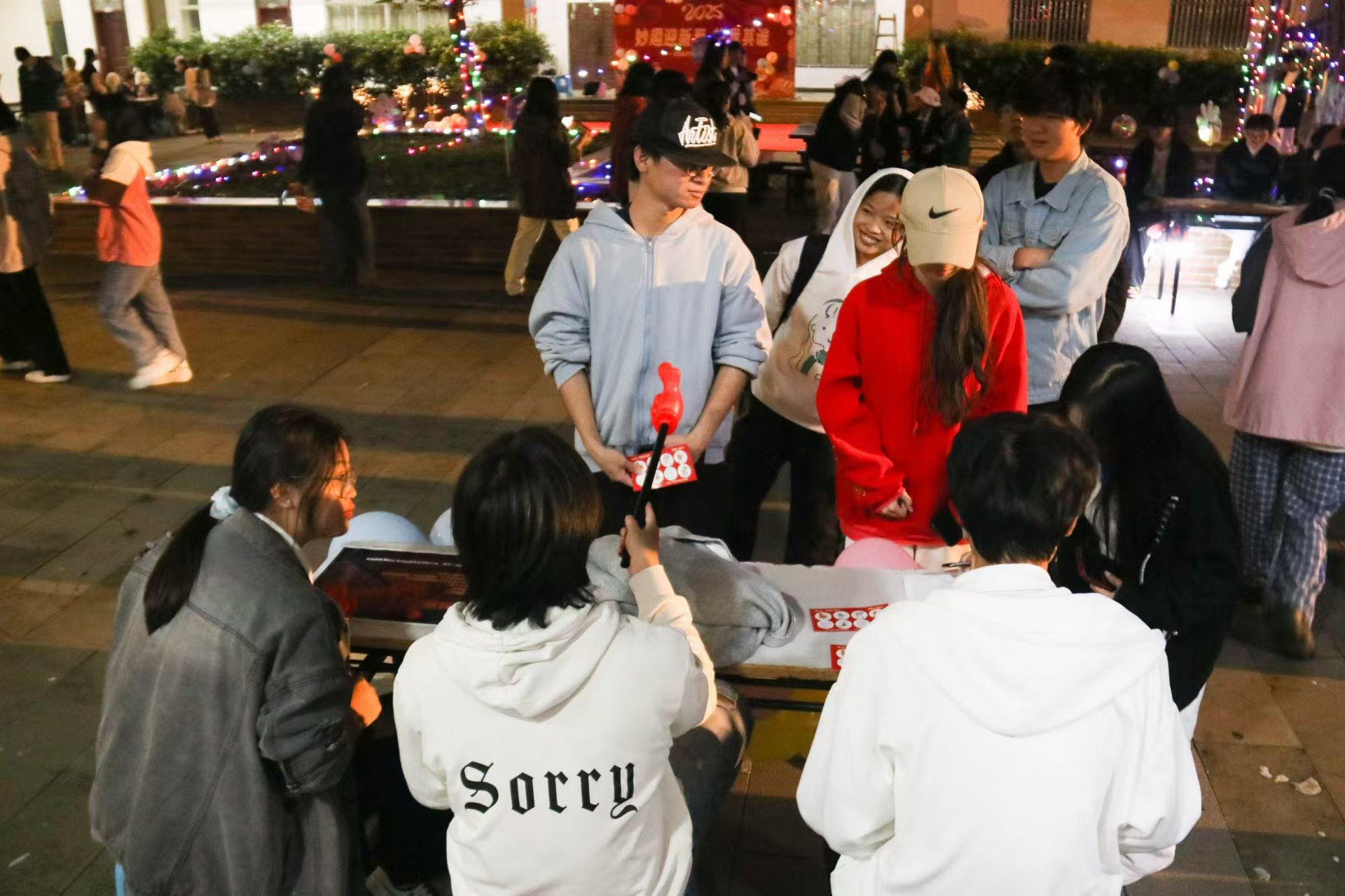 游园会现场,艺术团的同学们的表演精彩纷呈。舞蹈《桃花朵朵开》轻盈优美,赢得了阵阵掌声;《青苹果乐园》奏响了青春的旋律,让人感受到无限的活力;《竹竿舞》独具风情,展现了多元文化的魅力;最后的大合唱《春风十里报新年》更是将现场气氛推向了高潮,欢呼与掌声不断,整个活动节目多样,气氛热烈,向着新岁尽情释放欢乐。