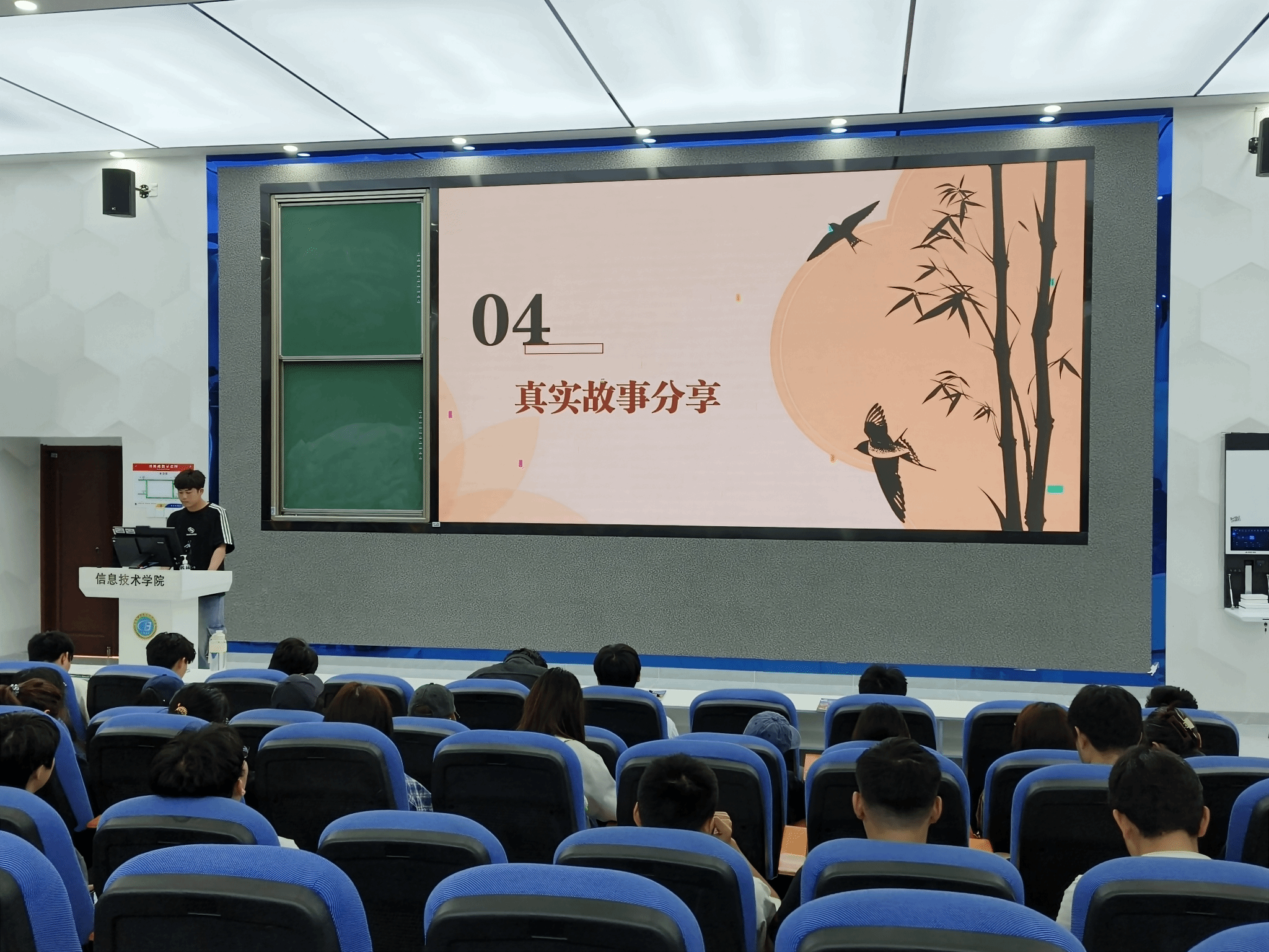 24软件1班以“润心第一课”为主题,在4-215多媒体教室组织班级同学开展人际交往拓展主题活动,通过双手交叉相握的游戏引导同学们认识心理学上的“适应”;通过“快乐传递”活动分享自己的真实故事;最后通过心理小测试帮助同学们释放不良情绪,注入满满的正能量。