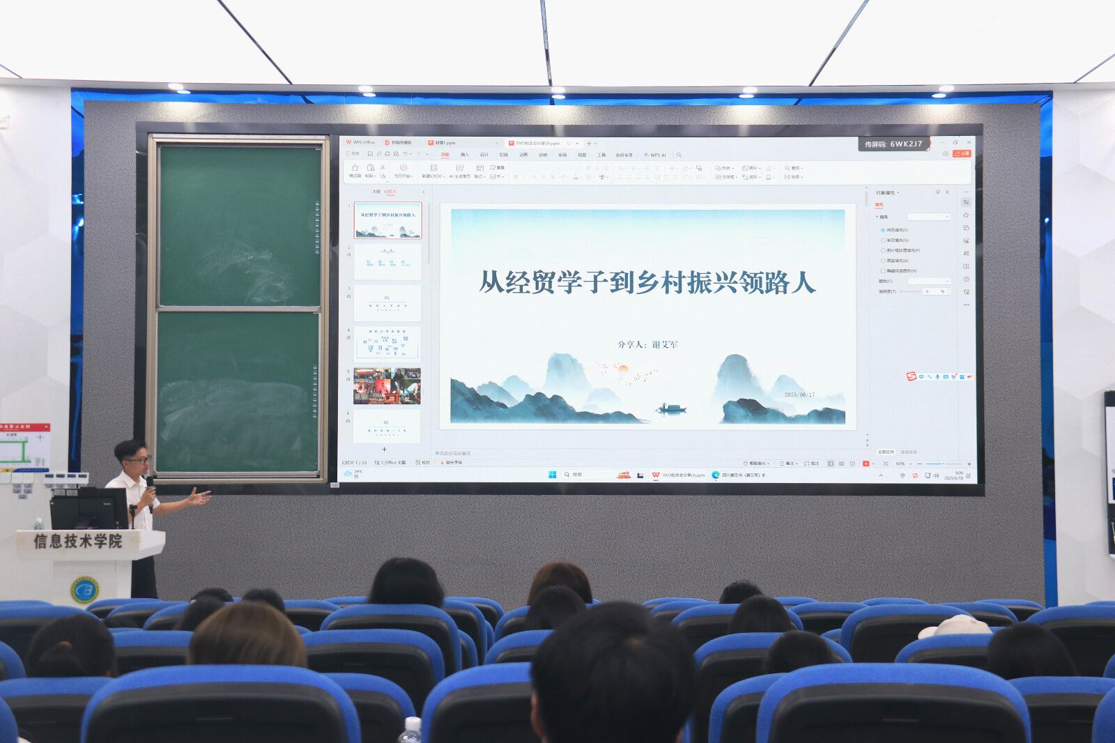 6月18日上午9时,437bwin必赢国际4-215教室内座无虚席,优秀员工谢艾军以“从经贸学子到乡村振兴守护者”为主题开展经验分享讲座。200余名师生现场聆听了这场充满奋斗力量的成长课。