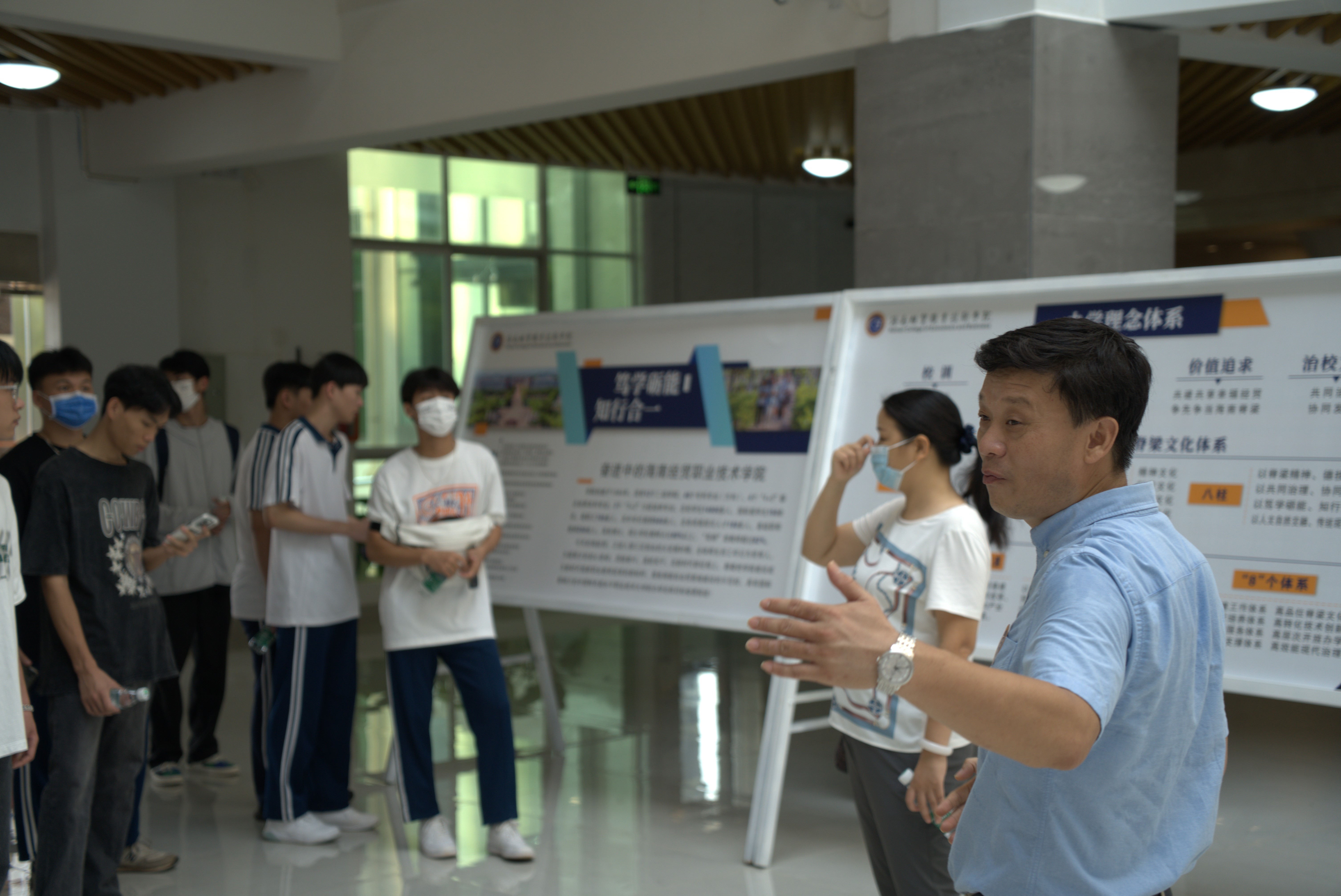 在437bwin必赢国际单继周副经理的指引下,大家走进校园,来到图书馆,驻足观看公司关于办学理念体系、中国特色高水平高职公司建设主要标志性成果、多元课程的介绍,全方位、多角度感受公司在团队、课程建设、体艺特色等方面的教育成果。紧接着,大家游览体育馆、操场、实训室等多个场地,随后,单继周副经理在4-207为大家介绍了437bwin必赢国际的人才培养、专业设置、教学成果等方面,大家有了更深的了解。