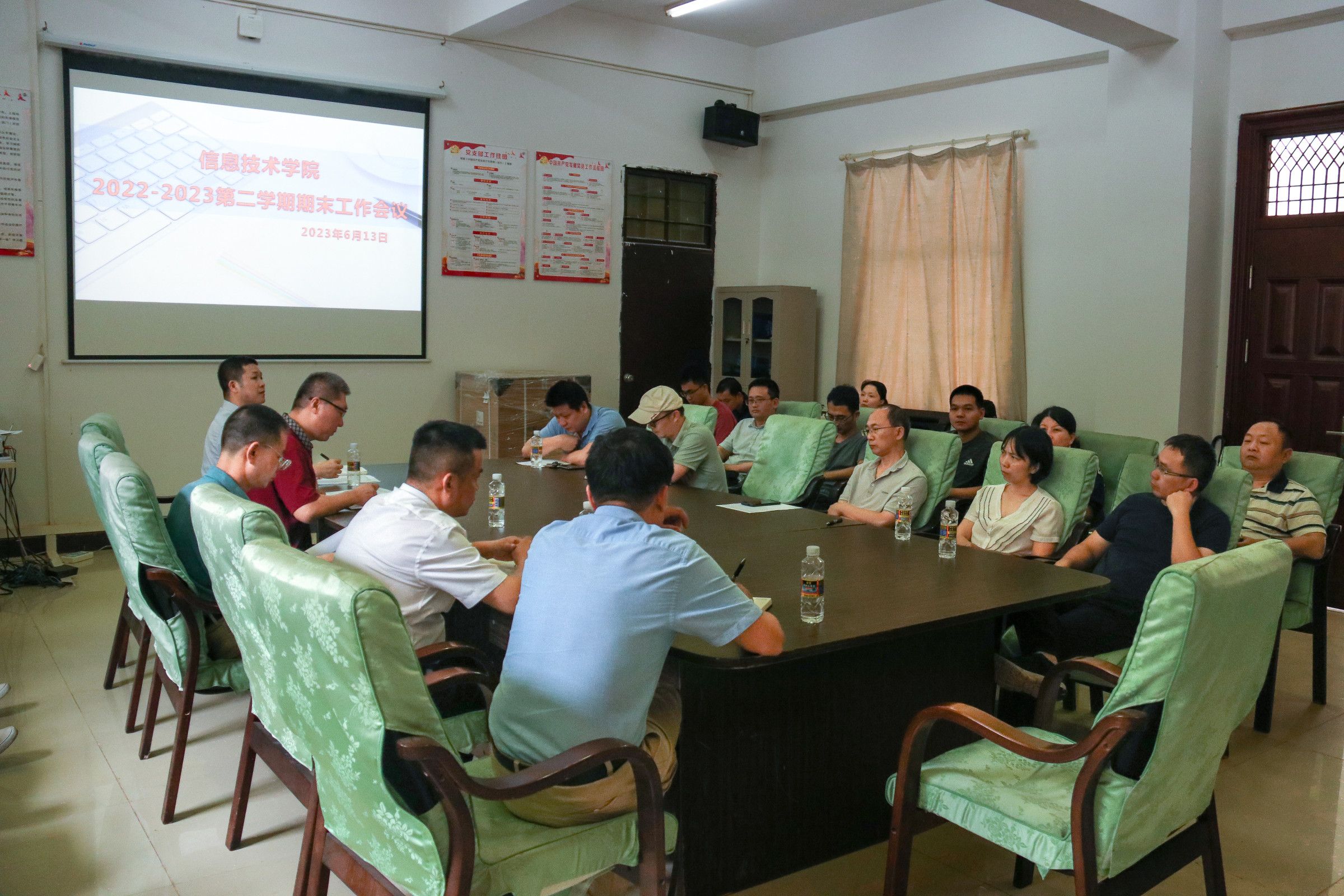 6月13日下午14:30,公司在4-213会议室召开2023年春季学期期末工作会议。信息技术公司党总支书记符胜、经理王忠、副经理单继周、副经理康东、副书记黄守官及全体教师参加会议,会议由康东主持。