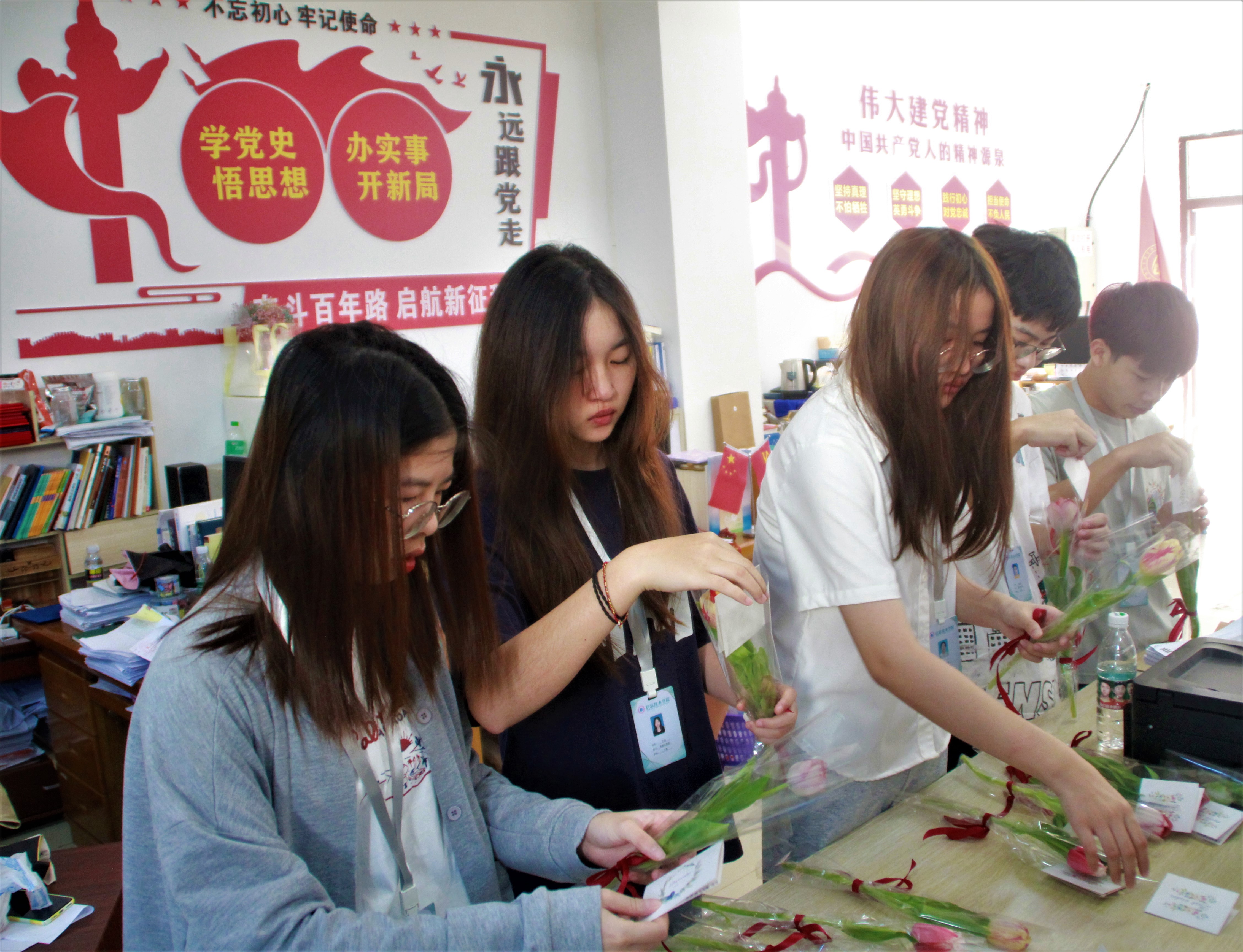 清晨,437bwin必赢国际团学干部给女教师们献以节日的问候和真诚的祝福,手中送出的是满怀心意的鲜花与礼品,口中诉说着是437bwin必赢国际所有学子对教师们的感恩之情。