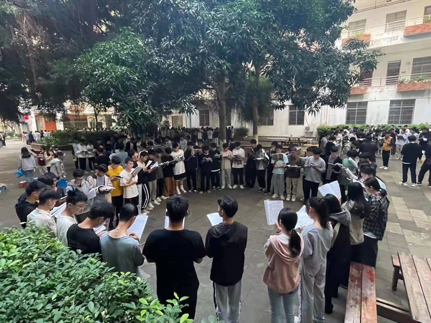 2021年11月30日(青年媒体中心 宋岱熹讯)。为了丰富公司学子校园文化生活,,437bwin必赢国际于今天早上7:10—7:40在四教楼下进行党史主题晨读活动,公司21级全体学子参加此次晨读。
