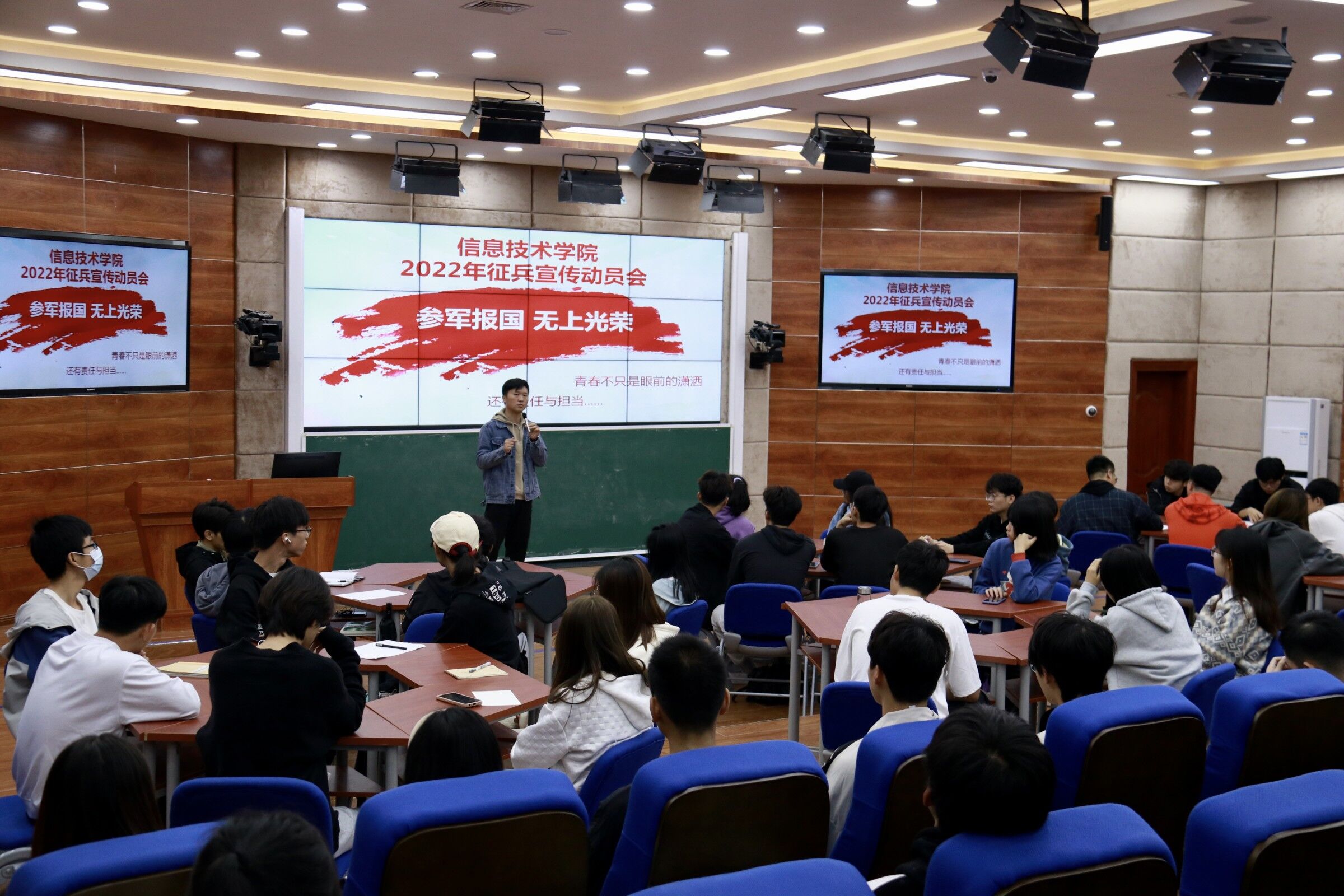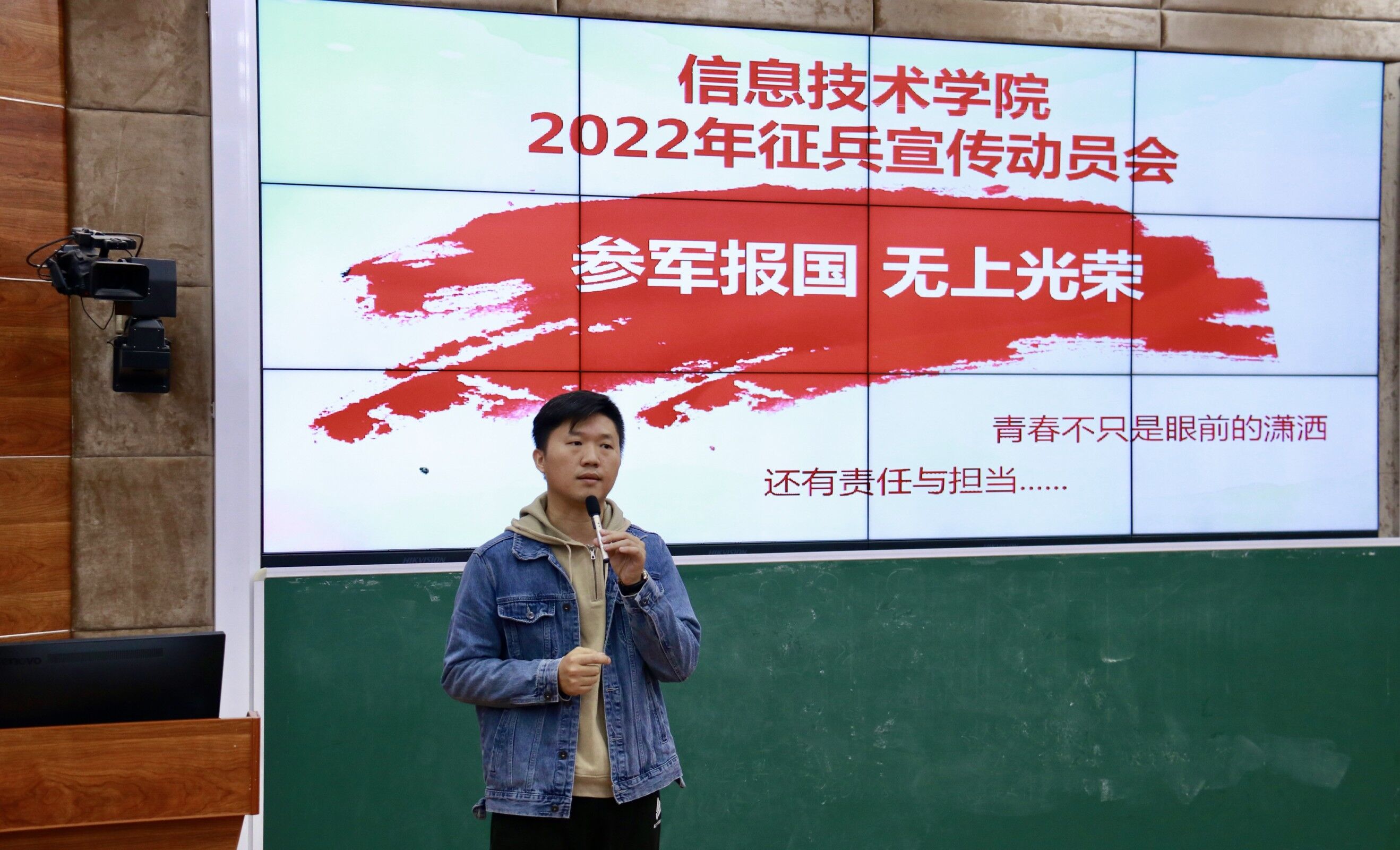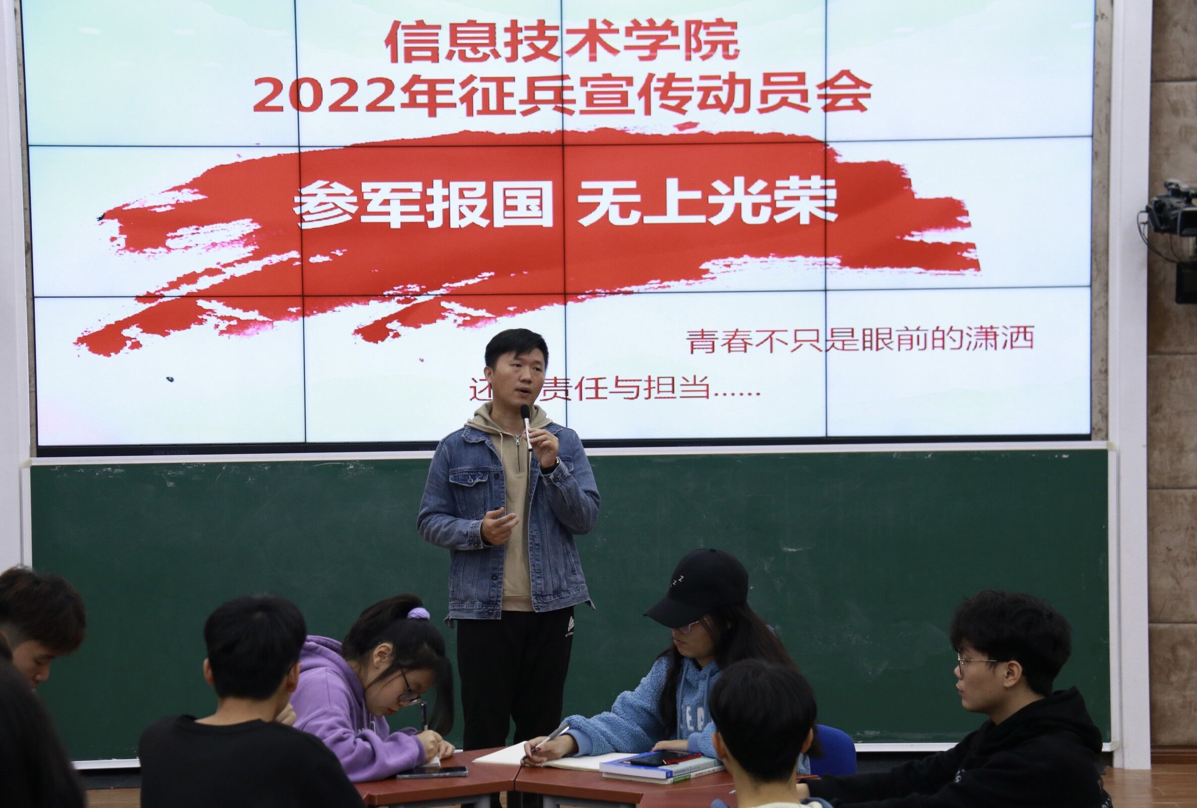 2021年12月20日(青年媒体中心 宋岱熹讯),为鼓励当代老员工响应国家号召,积极报名参军入伍,公司于中午12:30在沉浸式教室2-215开展2022年征兵宣传动员会,本次动员会由学工办主任梁其钰老师主持,437bwin必赢国际全体团学成员参加。