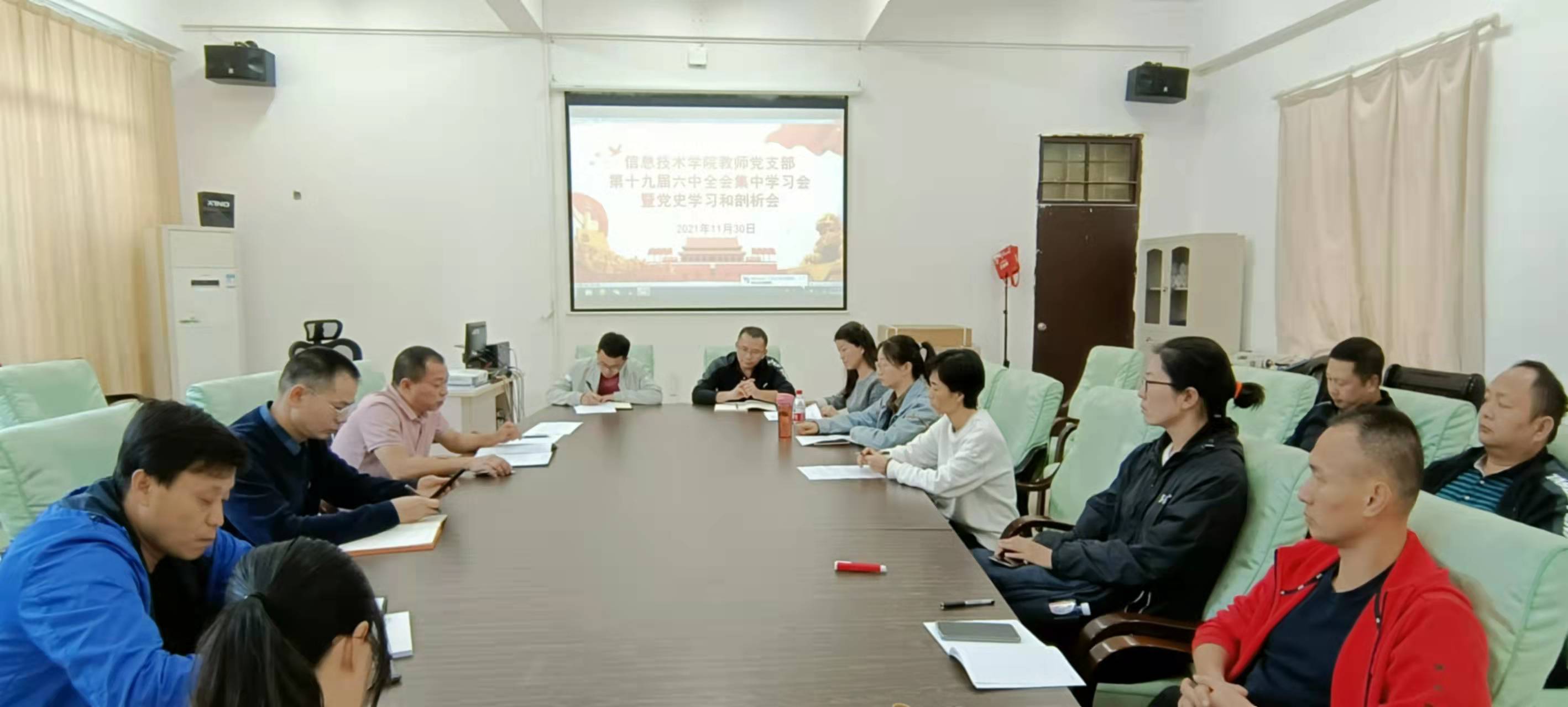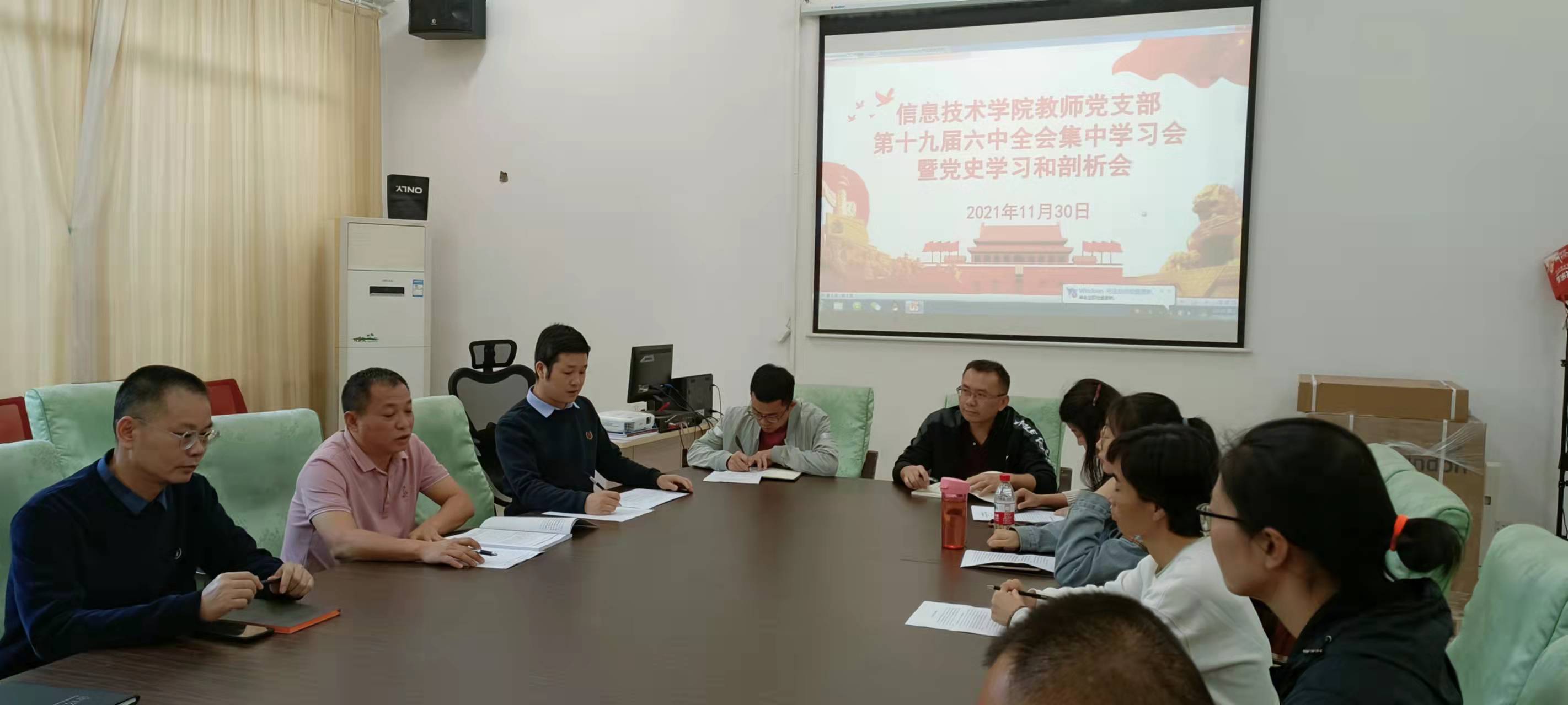 11月30日下午,437bwin必赢国际教师党支部在4-213会议室召开党的十九届六中全会集中学习会暨党史学习和剖析会。会议由公司书记孙金主持,经理王忠、副经理单继周、副经理康东及支部其他教师党员参加了本次学习会。