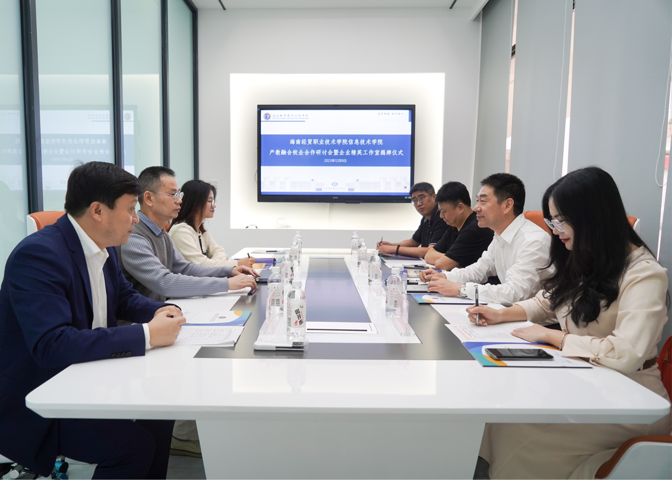 研讨会上,企业代表轮流发言,科大讯飞股份有限公司海南公司总经理张树彬指出,企业发展需要人才,人才发展也需要企业,并针对此次合作进行了详细的分析;海南省信息产业投资有限公司、海南省信息协会秘书长孙甄针对产教融合现状及发展趋势进行分析,提出了产教融合创新方案,有效地深化校企双方关系;海南英立大数据服务有限公司总经理赵欣鑫表示将以此次合作为契机,进一步深化校企合作,共同培养优秀人才。随后,校企双方进行深入交谈,探讨了社会对人才的新需求以及如何培养适应未来发展的人才类型。