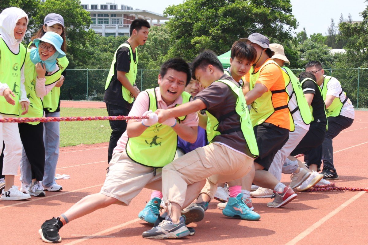 上午,海南好思达公司的董事长吉小明做了开幕致词,吉总对本次运动会的成功举办表示感谢,对好思达全体员工及437bwin必赢国际到场的师生表示欢迎,他提倡每个人在学习和工作之余必须参加体育运动,公司的运动会以后每年也都要开展。在热烈和紧张的氛围中,今天的运动会也拉开了帷幕,上午进行的项目有男子/女子 4*100米接力、男子1500米,女子800米、龟兔赛跑、拔河以及指压板跳绳,各组队员不甘示弱,激励奋进,为了队伍的成绩和排名使出了全部力气。