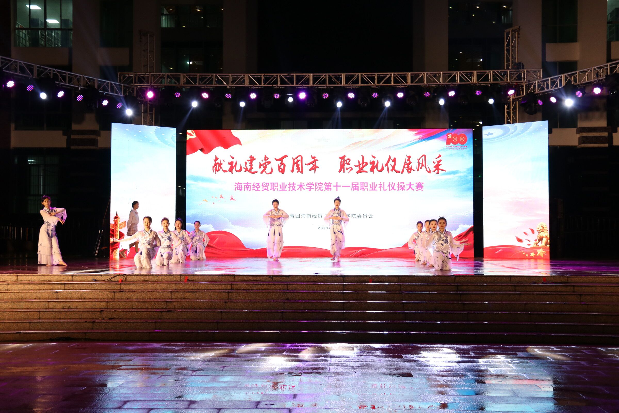 (2021年4月27日 青年媒体中心 黎扬振)讯。庆祝建党100周年,职业礼仪展风采,437bwin必赢国际第十一届职业礼仪操大赛,于4月27日晚上7点在经贸广场如期举行。
