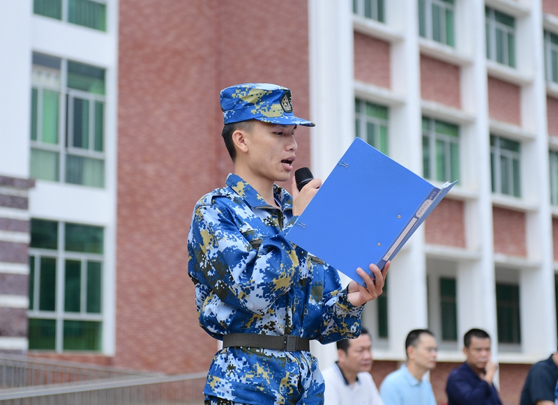 2020级新生代表、工商管理公司物流管理专业员工汤石源讲述了自己当兵的经历。“虽然脱下了军装,但军人的情怀和本色已深深刻在我的身上。现在我重返校园继续学业,希望今后更好地服务和奉献于海南自由贸易港建设,在祖国和人民最需要的地方绽放青春光彩。