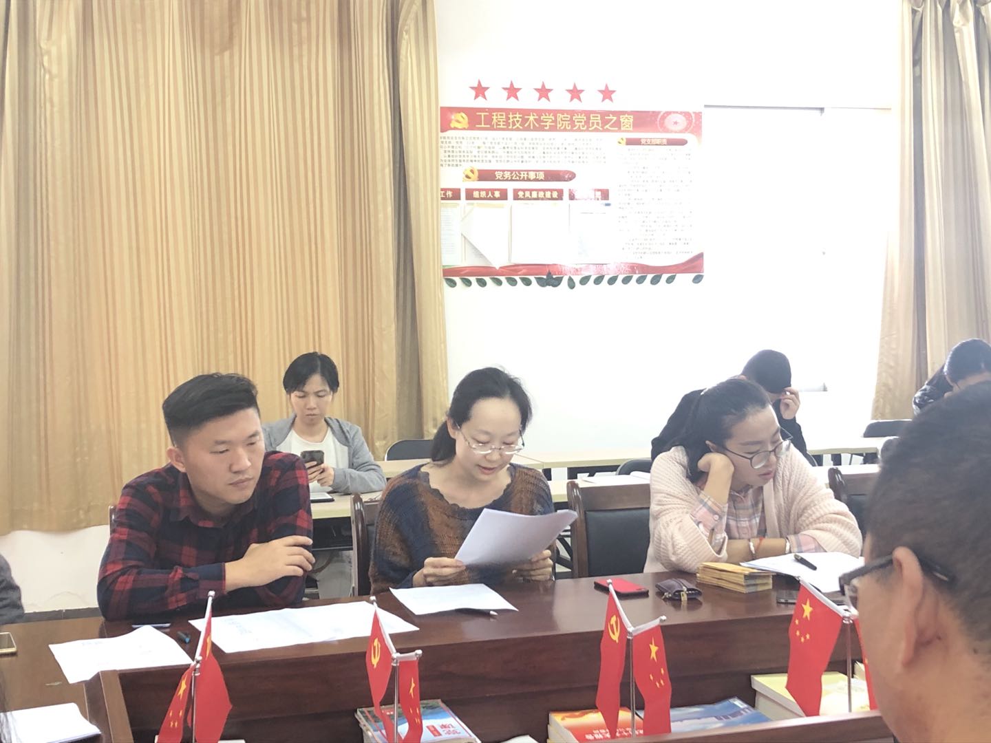 教师党支部书记韩昌豪作述职汇报,在过去一年,教师党支部过于重视教务工作而轻视党建的重要性,党支部开展的主题党日活动趣味性、时效性不足,党小组的领导力较弱,在接下来的2020年,将继续学习先进的理论知识,弥补自身不足,提升党建业务能力,加强支部党员干部的管理。