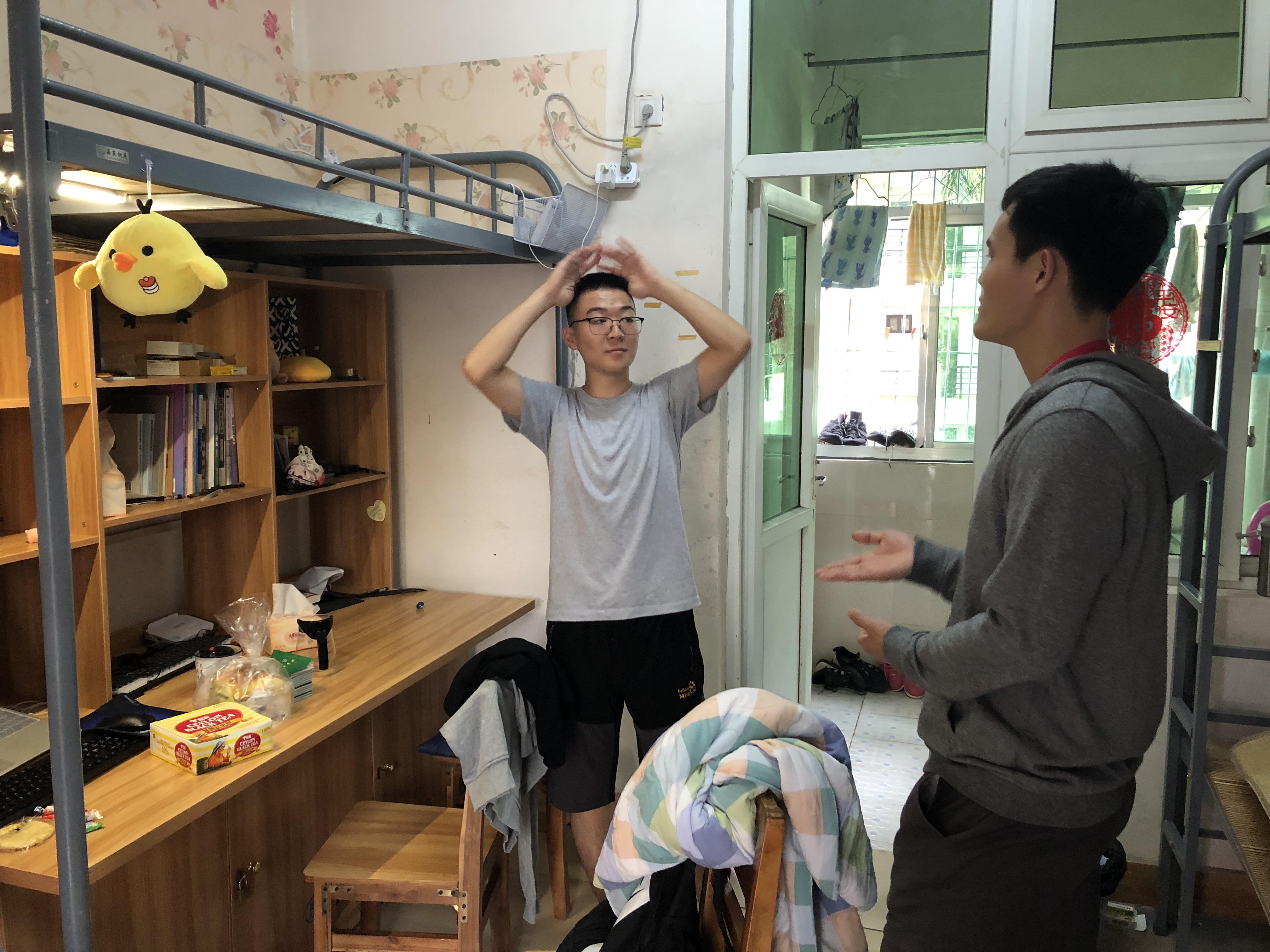 辅导员督促员工做好卫生、注意安全
