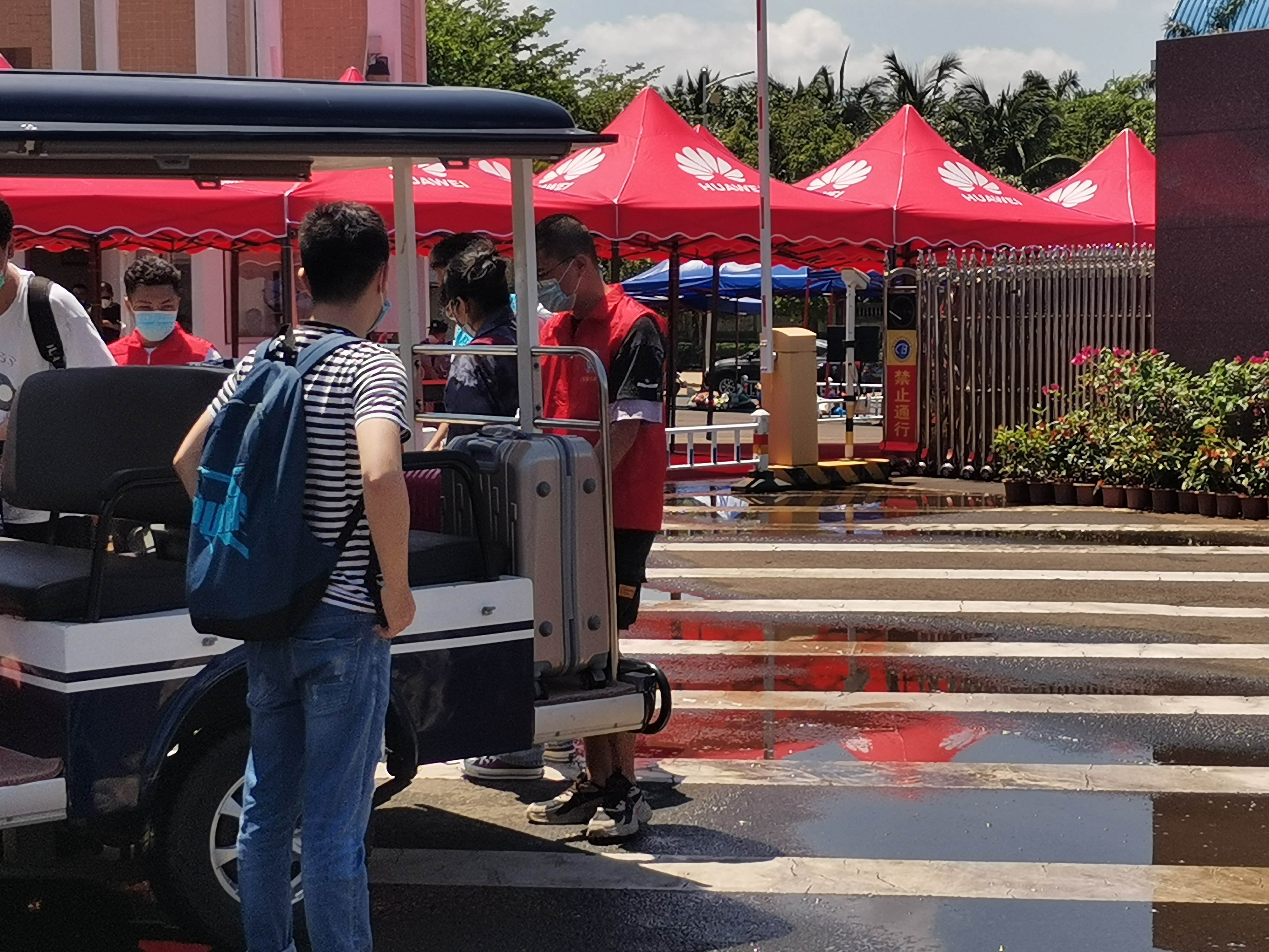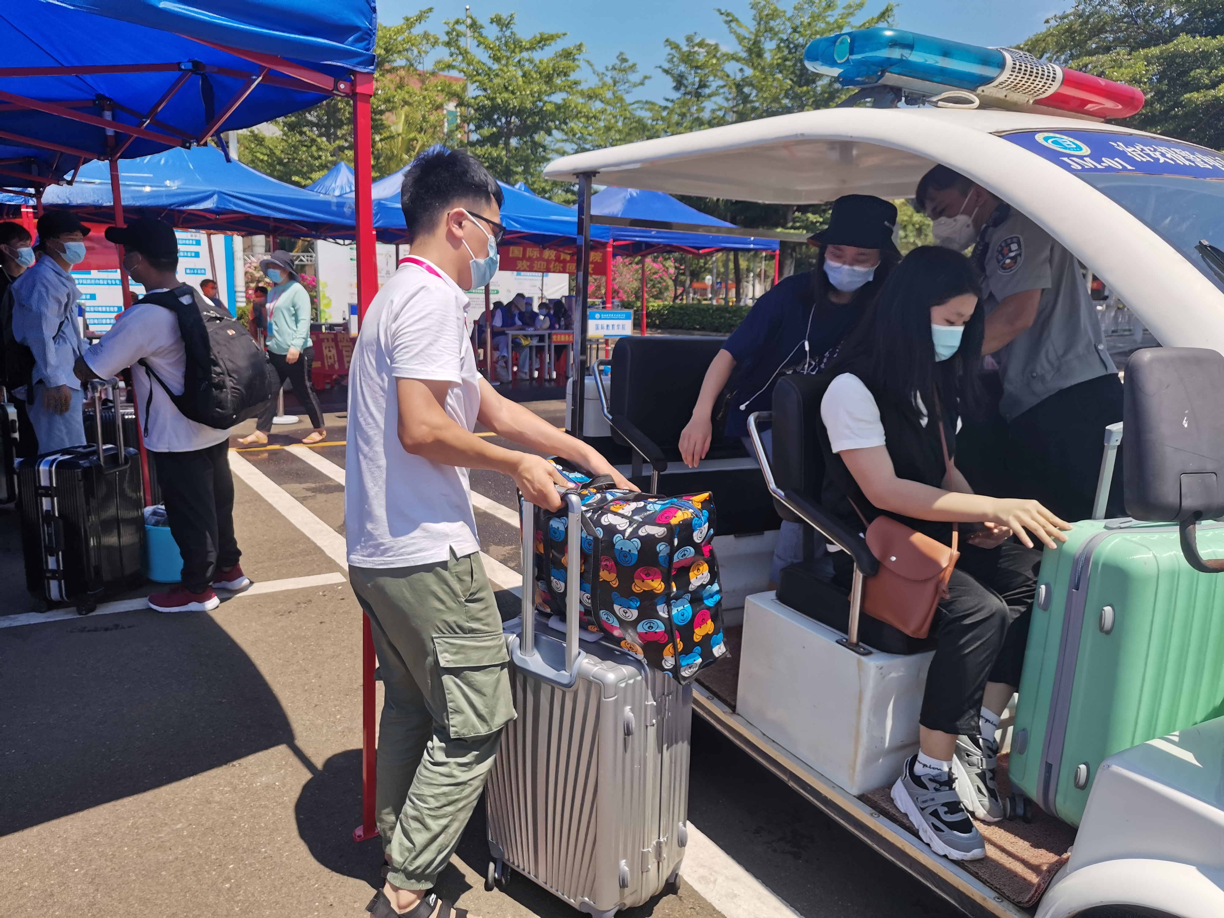 将一个又一个同学接进校门,送上回宿舍的电瓶车,时隔4个月的校园生活终于开始了新的篇章.同学们洋溢的笑脸,老师们深切的关怀,依旧是脑海里熟悉的画面,希望大家能在校园里继续扬起理想之帆,圆满完成自己的学业,同时,期待与省外返校同学们的相见。