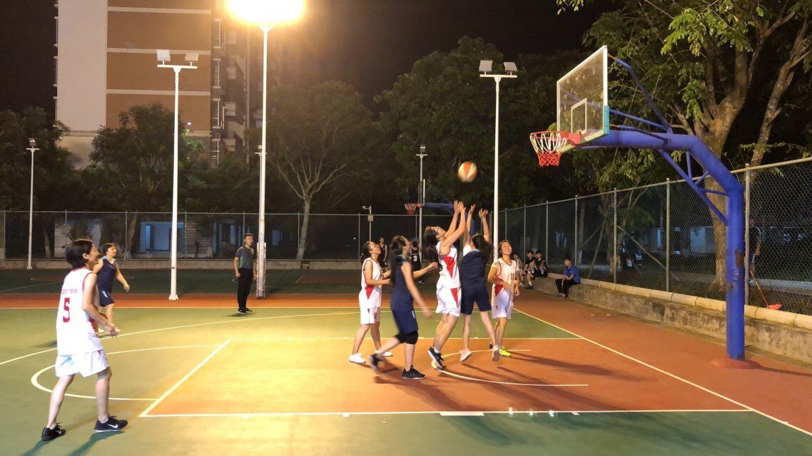 2019年9月27号(院青年媒体中心)讯,9月25日晚19:30在篮球场公司女教职工代表队迎来了公司第四场篮球赛。本场比赛为公司女队VS机关女队。赛前双方热身、试球,拉拉队也迅速地集结到场。