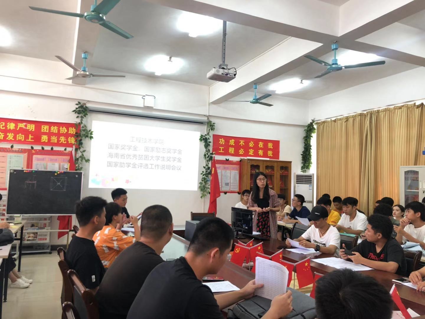 郭蓉佳老师主持会议并带领各班长学习437bwin必赢国际员工工作处下发的关于“公司奖学金”评审工作、全日制残疾员工、特殊家庭经济困难员工减免学费和住宿费工作、国家奖学金评审工作、国家励志奖、国家助学金及海南省优秀贫困老员工奖学金评审工作的通知。随后向大家讲解申请各奖助学金的注意事项、所需资料、班级名额分配、资料提交时间。