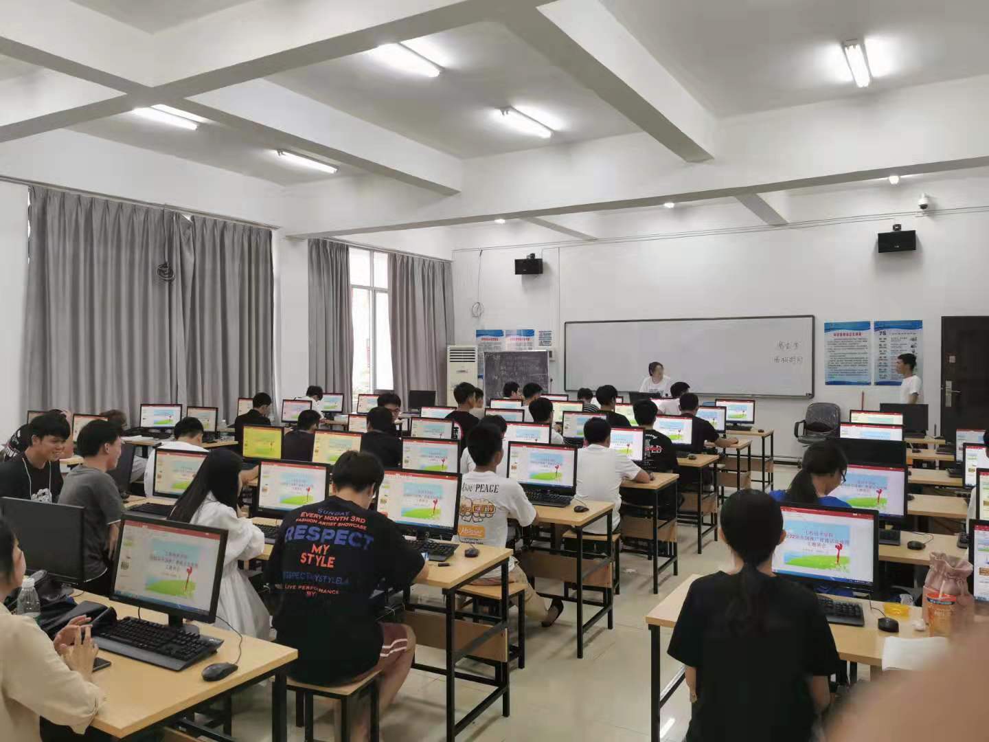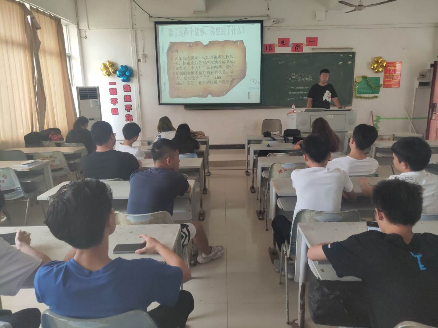 18级各班从“什么是普通话、推广普通话的重要性和必要性(1、是社会交往的需要;2、是两个文明建设的要求;3、是每个公民的权利和义务;)、有关汉字的七个概念以及推广普通话宣传口号”等内容展开,同学们的积极参与讨论。