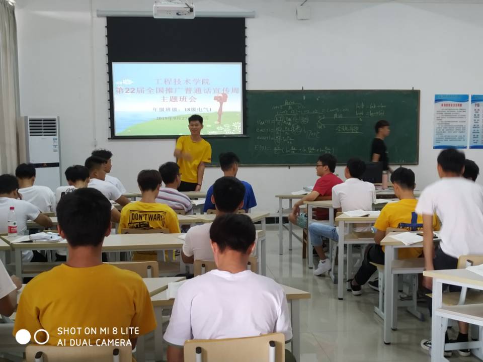 2019年9月29日(院青年媒体中心报道)讯,2019年9月16日—22日是第22届全国推广普通话宣传周。为全面落实国家语言文字的方针政策和法律法规,加强全体员工的普通话,传承发展中华民族优秀传统文化,9月29日,2018级各班成功组织开展推广普通话宣传周主题班会。