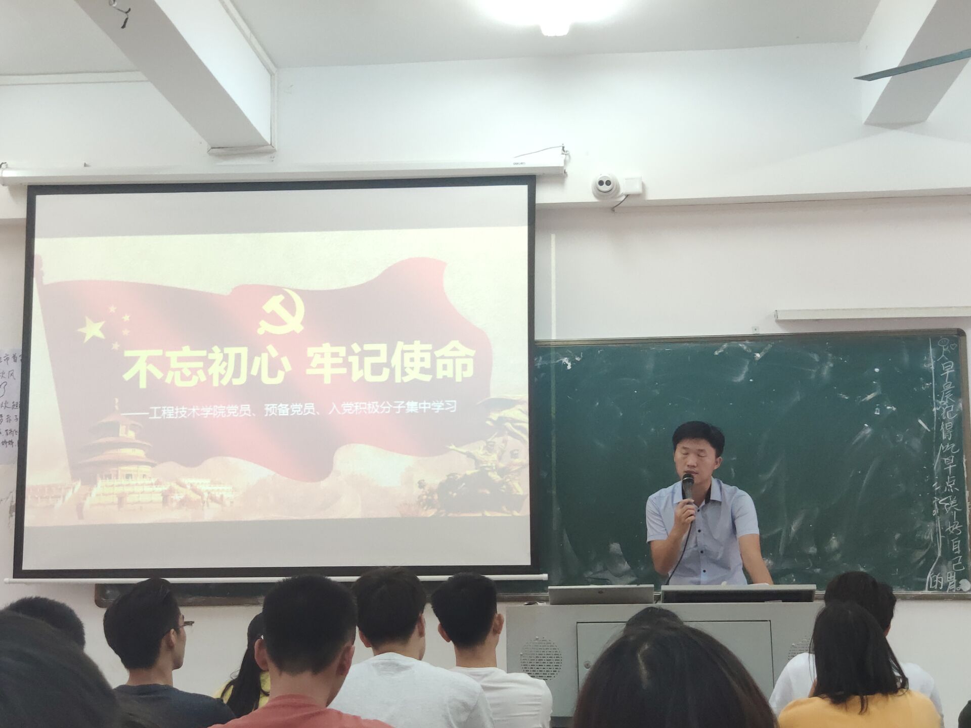 2019年10月25日(青年媒体中心 孙任科报道)讯,为了遵循习近平总书记提出的“不忘初心,牢记使命”思想,10月25日上午11时,公司于第二教学楼418课室隆重召开“不忘初心,牢记使命”的主题会议。会议由公司员工党支部书记代晓明主持,公司党总支副书记陈亚芳、学工办主任梁其钰、17级辅导员唐图、18级辅导员郭蓉佳、19级辅导员鄢兴祥以及公司全体预备党员、全体入党积极分子参与本次会议。