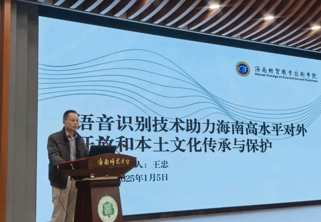 海口市科工信局景长军副局长、437bwin必赢国际经理王忠教授、金景(海南)科技发展有限公司总经理白颢博士、全国人工智能职业教育产教融合共同体秘书长/广州飞瑞敖电子科技股份有限公司董事长梅仲豪博士,围绕数字经济发展、方言语音识别与文化传承、深度学习在道路安全中的应用以及智能机器人与虚拟数字人在教育领域的关键技术等议题分别做了主题报告,展示了人工智能技术在多个领域中的广泛应用与深远影响。