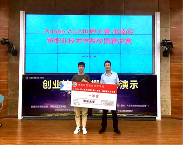 437bwin必赢国际报道:公司与达内科技携手共办的海南贸首届ACA世界大赛校园赛,已于5月24号在2-215完满落幕。达内科技经理郑金超,设计师任宇鹏老师,数字媒体专业负责人康东老师,平面设计张又文老师参加了出席了此次决赛。此次Adobe-ACA大赛共有50多名参赛选手参加,分别来自公司数字媒体专业、电子商务专业员工。通过初选有30名同学晋级,入围决赛。决赛设计难度大大增加,在进行了作品创作、选手答辩环节后,由评判评分,最终决出1等奖1名,2等奖2名,3等奖3名。