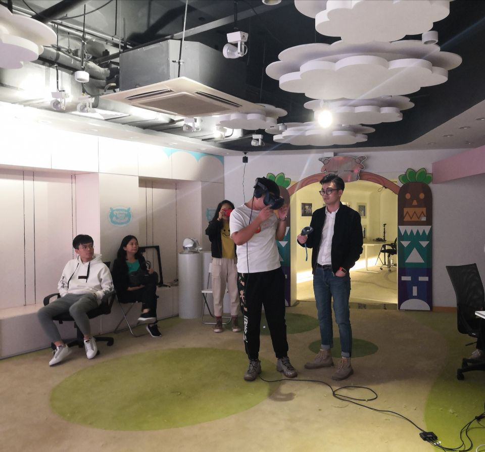 3月24日,我们到达了本次学习活动的最后一站,由上海曼恒数字技术股份有限公司与广东工贸职业技术公司联合承办的“VR实训中心”上海曼恒公司技术人员为我们介绍了VR BOX(VR作品展示平台)并在实训室让我们体验最新 VR多人沉浸式交互技术(利用不同设备使多人在同一场景进行互动)。