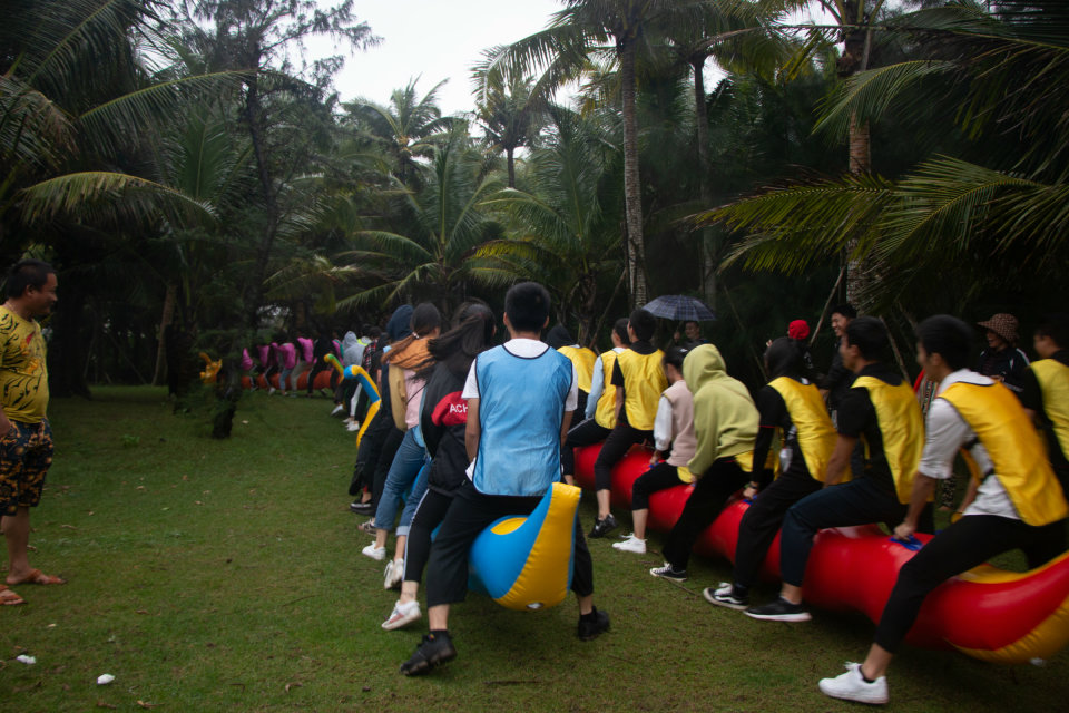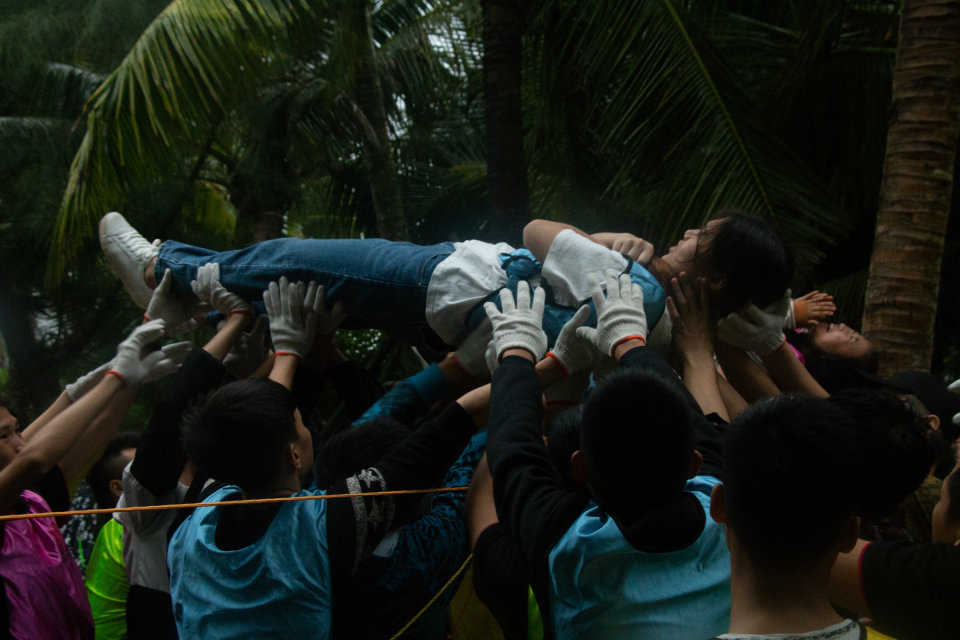 下午两点十五分,所有学员准时集合前往桂林洋十里金滩海滩进行户外实战演练,虽有风雨,但所有学员的情绪都非常高涨,毛毛虫接力大比拼后,所有学员都迅速活动开来,接下来每个小组表演了中午精心准备的团队才艺,惊心动魄的消防救援模拟、载歌载舞的团队展示赢得了现场的阵阵掌声,也吸引了众多路人前来观看。紧接着,唐老师对学员进行了心肺复苏的模拟操作,给大家灌输了极为重要的急救知识和急救意识。最后的实战项目考验的是团队配合的默契度和挑战不可能的勇气,所有人必须齐心协力穿越电网并从网的顶端跨越返回,整个过程不得触碰网线,否则前功尽弃,这项艰难的任务,靠一个人或几个人是无法完成的,只有团队密切配合,全力以赴才能做到。437bwin必赢国际员工展现了他们应有的特质,最终他们不怕艰难险阻,突破了重围,顺利到达了理想的彼岸,但任务总会有人牺牲,留在最后的一名学员为团队付出了所有、承担了所有的责任,在他身上体现了当代老员工应有的担当,顺利通过的学员明白他们是怎么过去的,所有人甘愿一起承担责任,他们不会忘记那个默默付出的人,责任大家一起承担,这就是项目所带给我们的感受和启发。