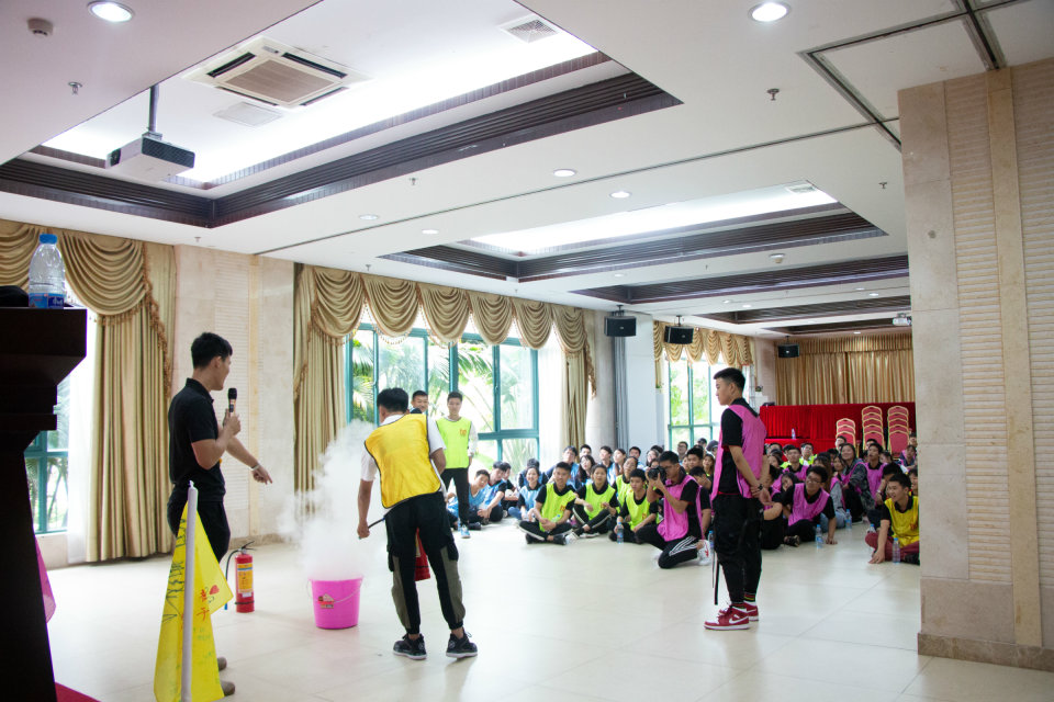 上午九点整,参加培训的学员准时在会议室集合,437bwin必赢国际梁其钰老师对本次学习的目的和预期的目标作了简要说明,周恺老师强调了本次学习的纪律,接着梁老师带领所有学员对培训目标达成及纪律要求进行宣誓。为了充分调动学员的积极性,梁老师将在场的学员分成四组,并引入竞争机制,对团队协作项目能量传递、勇争先锋进行小组PK,有的小组在制定策略、团队沟通、任务执行上表现出色,分数领先,有的小组在执行力上有所偏差,分数相对落后,但所有小组都认真总结成功或不足的经验,并进行分享,相互的学习和交流产生了火花的碰撞,每个小组每个队员保持着最佳的战斗力。小组PK后,唐图老师对所有学员进行消防知识的普及,唐老师引用老员工使用违规电器导致宿舍失火的案例,迅速吸引了每位学员的注意力,接着实地演示灭火器的正确使用方法,部分学员学习并亲自体验了正确使用灭火器的流程,随后进行了安全消防知识竟答。