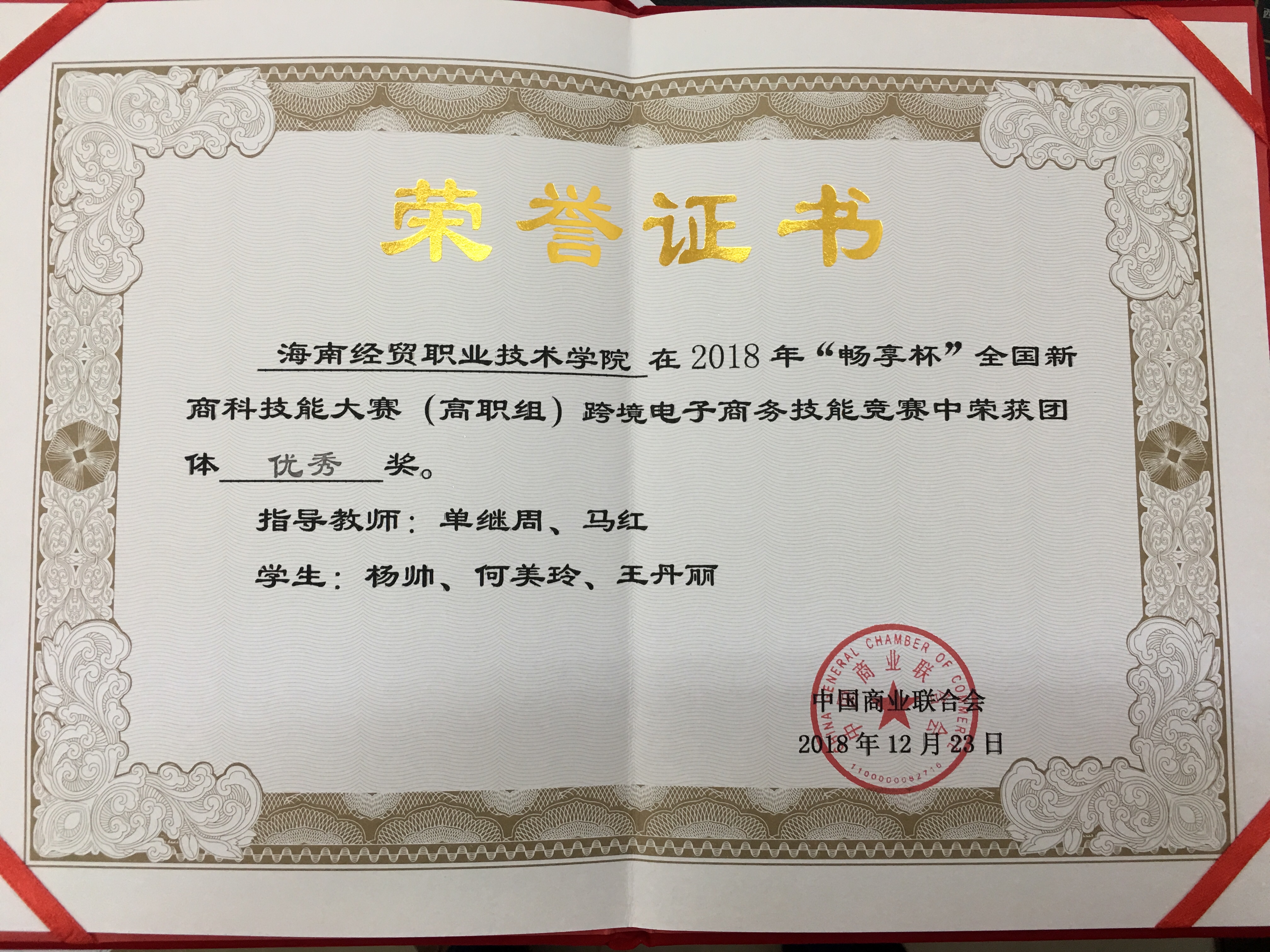 喜讯:437bwin必赢国际代表队在2018年“畅享杯”全国新商科技能大赛(高职组)跨境电子商务技能竞赛全国总决赛中荣获团体优秀奖