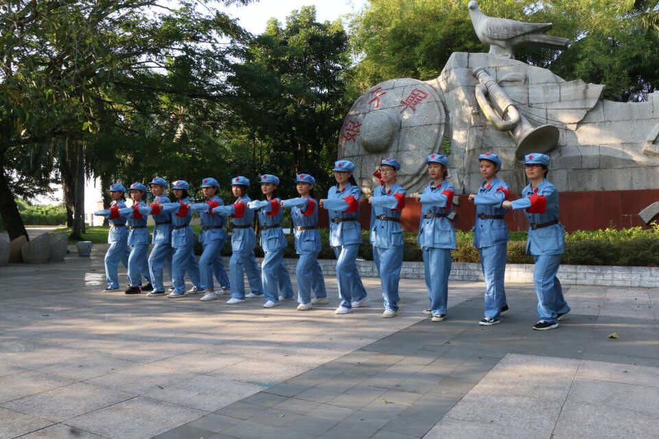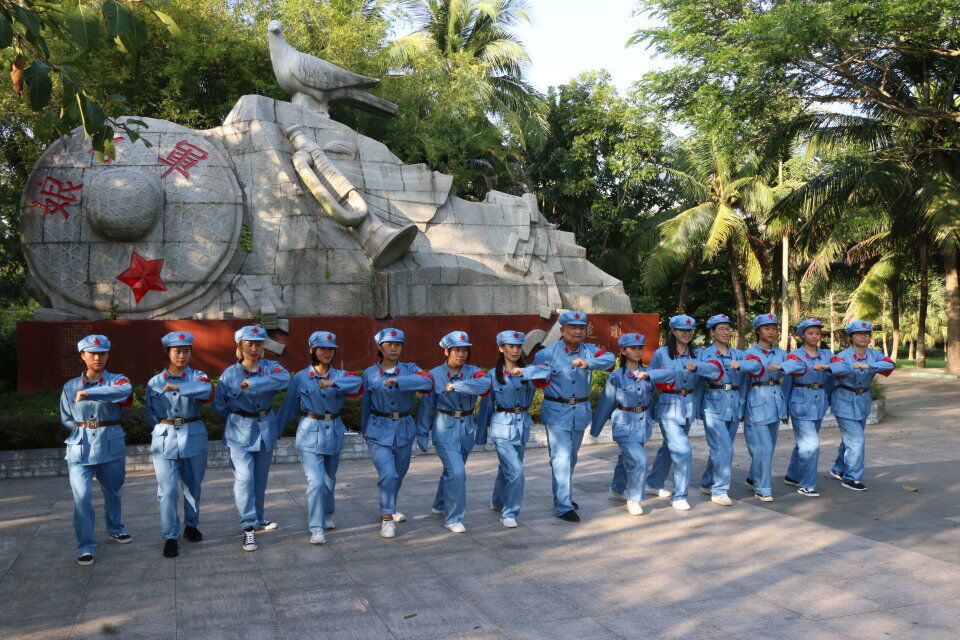 公司经理单继周老师,副经理王忠老师,党总支书记陈继敏,党总支副书记陈亚芳,学工办主任梁其钰,团学负责人唐图老师,17级辅导员周凯老师,18级辅导员郭蓉佳老师,以及团学青部分代表,17,18级各班班长,共同赶赴海南琼海,一览琼崖纵队的红军精神。