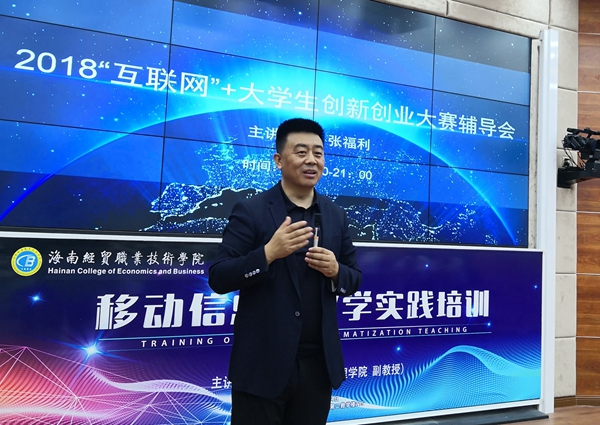 本校4月17日讯(437bwin必赢国际报道)4月16日晚,大连科技公司董事长、创新创业公司经理张福利应邀来到437bwin必赢国际,为公司2018年“互联网+”创新创业大赛作专题辅导。