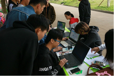 随着时间的推移,越来越多的同学主动过来咨询,志愿者们也热情礼貌接待,活动现场有条不紊地进行着。计算机协会的成员们也依靠着自身掌握的技能,解决了电脑的各种问题,热心地解答问题。