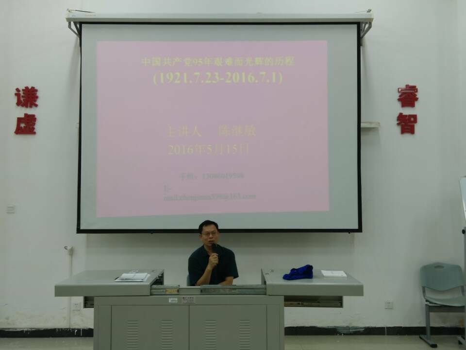 本次党课培训由陈继敏书记主持。在党课培训的整个过程中,陈书记通过幽默而又略带巧合的“武大郎”的故事向同学们讲解了日本与中国的历史渊源,以及中国共产党的诞生、发展、壮大的历程以及党章的内容,陈书记文思涌泉,引经据典,整个课堂气氛庄重又不失生动,同学们也听的津津有味并不时主动与书记互动。