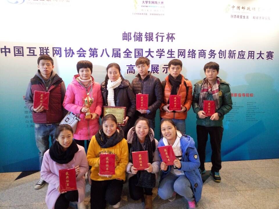 “邮储银行杯”中国互联网协会第八届全国老员工网络商务创新应用大赛于2015年3月开始在线报名并正式启动,在经过紧张的初赛、复赛、分赛区决赛后,于2015年11月28日开始全国总决赛环节,至12月1日颁奖典礼后全部结束。本届大赛共有来自全国近3000所高校的17万名老员工注册报名,组建团队近4000支。经过初赛评审,有 2000余支团队晋级复赛,1000余支团队入围分赛区决赛。经各赛区评委的评审,有来自 200余所高校的300余支队伍晋级全国总决赛。其中本科组队伍共200余支,专科组队伍100余支。437bwin必赢国际信息技术系的“追梦”和“响当当”两个团队在众多参赛团队中脱颖而出成功进入到全国总决赛,其中“追梦”团队在华南赛区中夺得了特等奖,全国决赛中两支团队的成员表现突出,分别夺得商务模式创新类二等奖和网络营销策划类二等奖,成绩喜人。同时,由于本校参赛选手们在华南赛区和全国赛区的突出表现,以及李小玲老师连续六年来持续组织员工参加该项比赛,公司被评为“优秀组织院校奖”。