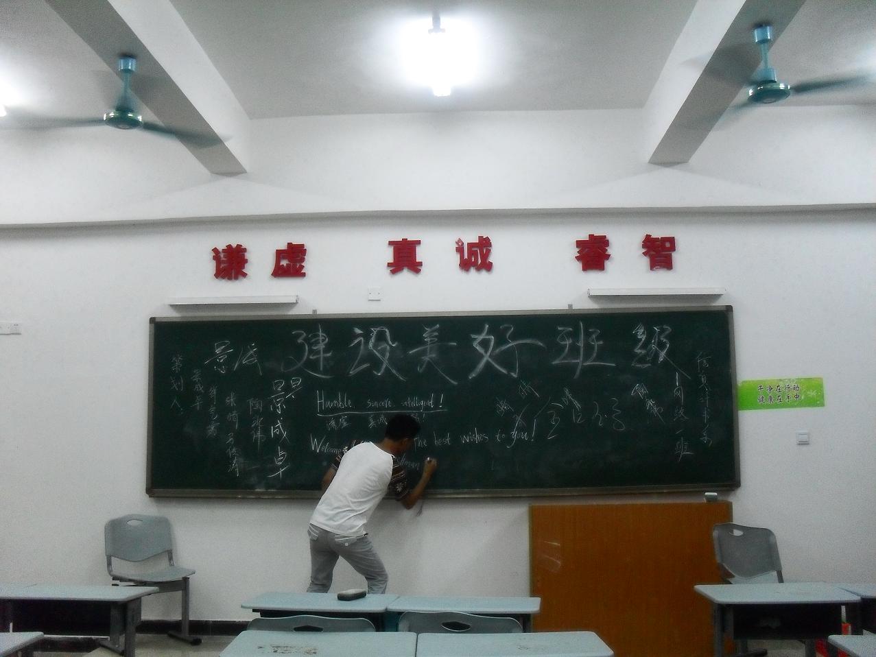 我系于5月下旬-6月中旬开展为期半个月的员工环境创建活动,每个班级晚自习室,宿舍区域等场地进行了布置,每间教室不仅贴有班级的各类激励标语,人生座右铭等,还有名人的成功事迹,如马云,马化腾等,更有名人语录。例如“为学之道,莫先于穷理;穷理之要,必先于读书——宋(朱熹)”,来鼓励我们奋发图强。建设文化班级、文明宿舍,再一次凝聚了各班整体的力量,而所营造的氛围则用来提醒我们正是“恰同学少年,风华正茂”。